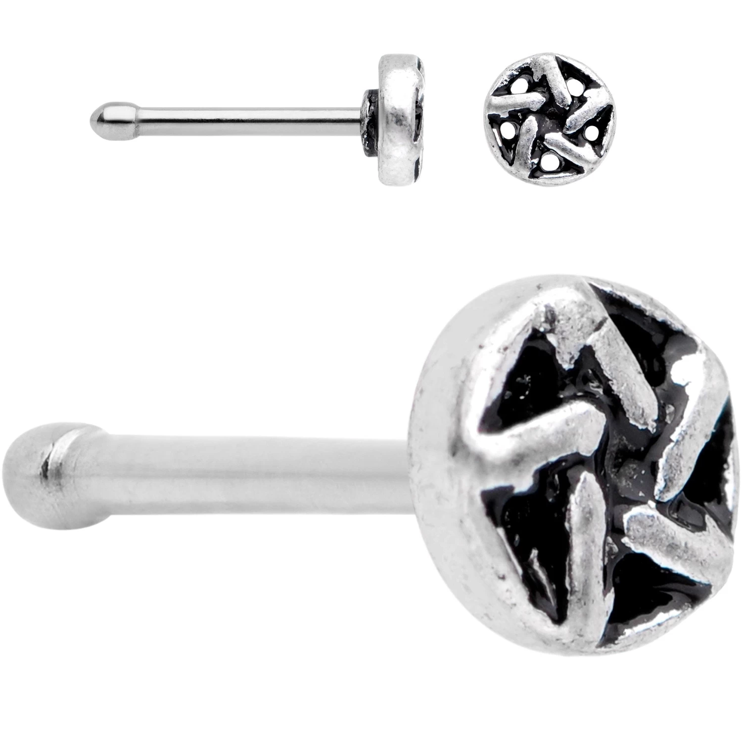 Make sure you have options for your pierced nose with this set of 6 nose rings in the nose bone design. These 20 gauge nostril rings have a length of 6mm and are made from durable 316L surgical grade stainless steel straight posts. Included in this package of 6 nostril rings are a nose piercing with a star knot top, two crescent moon charms, a white faux opal press-fit end, a clear gem press-fit end, and a plain ball end. These nose bone piercings are sold as a set of six.