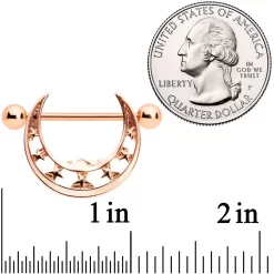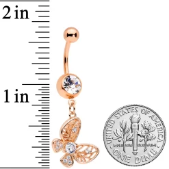 The lovely butterflies on this 14 gauge nipple jewelry are so elegantly structured they might leave you feeling a touch loopy! They’re made with 12mm rose gold tone PVD over 316L surgical grade stainless steel straight barbells. Each end features a butterfly charm composed of clear and aurora color gems. The butterflies each feature an openwork loop in their wings, giving them an airy feel with eye-catching detail. Why get butterflies in your stomach looking for the loveliest nipple piercing jewelry when you could have these butterflies in your nipple piercings? Sold as a set of two.