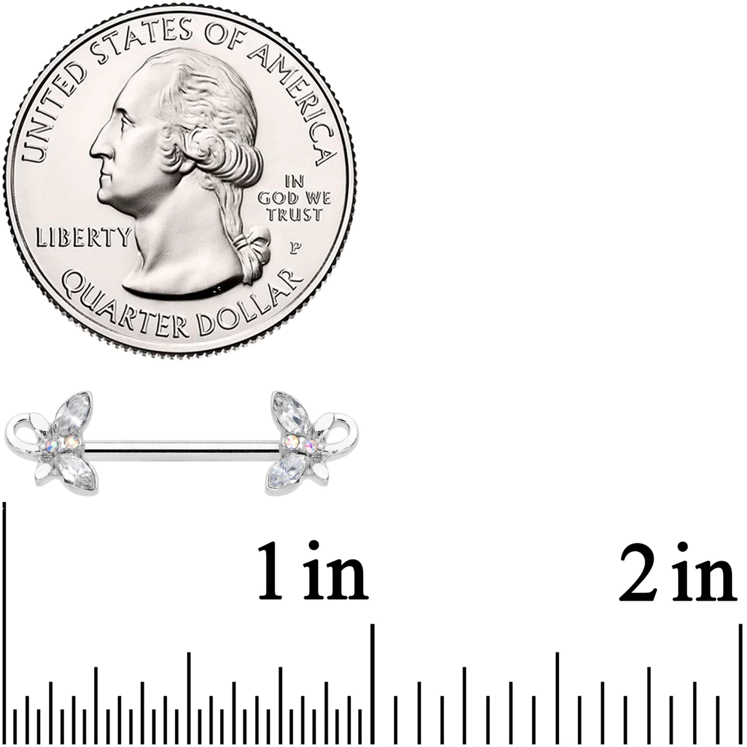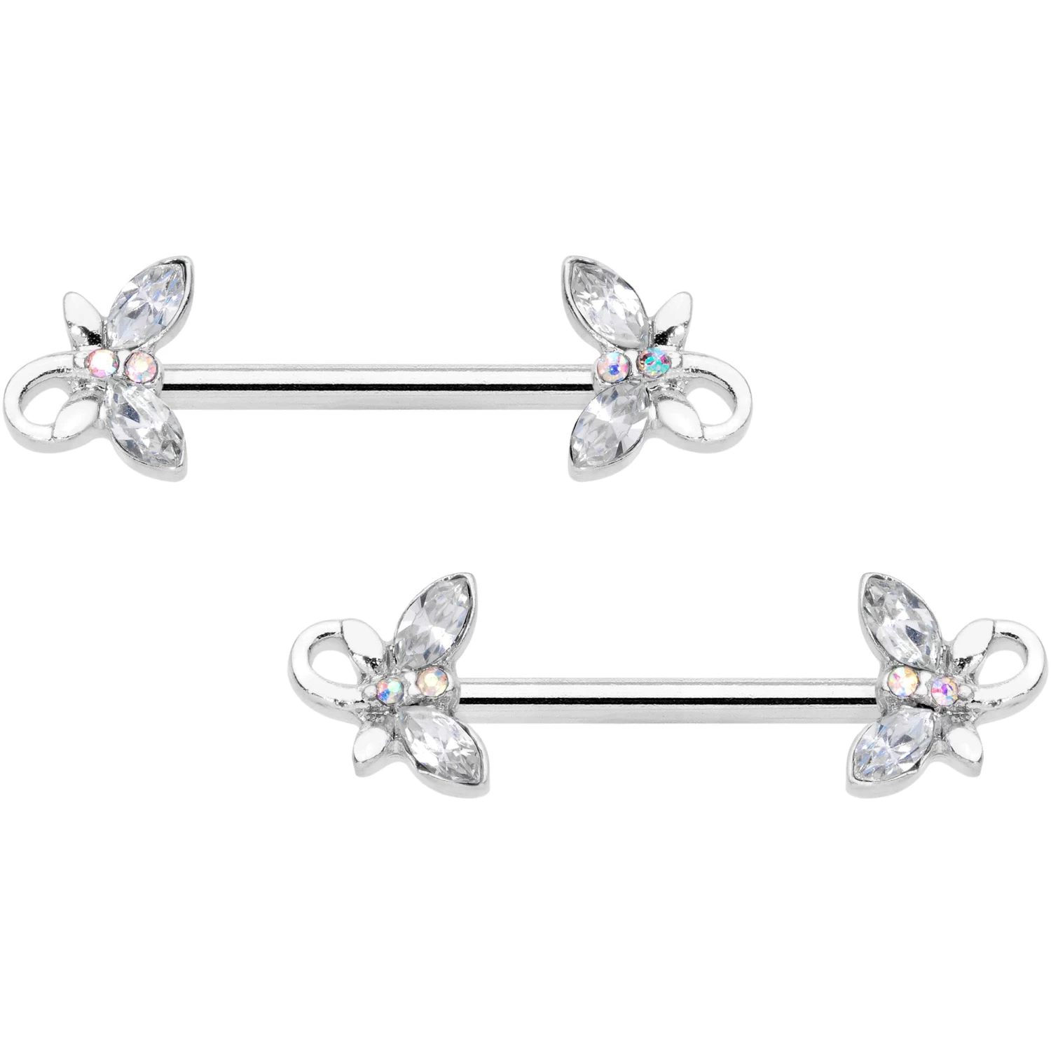 14 Gauge 1/2 Clear Aurora Gem Loop Butterfly Barbell Nipple Ring Set