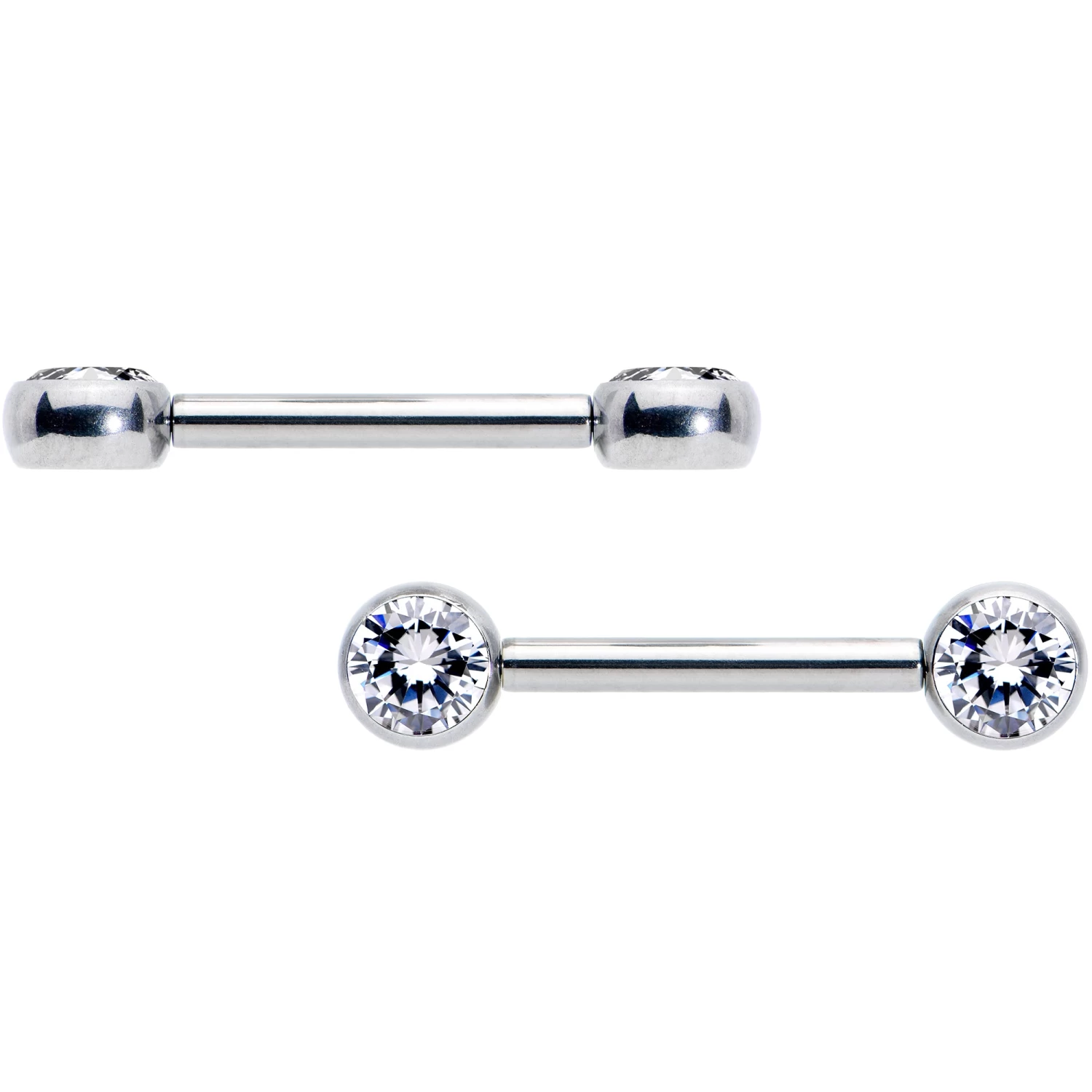 14 Gauge 1/2 Clear CZ Gem G23 Titanium Threadless Nipple Ring Set
