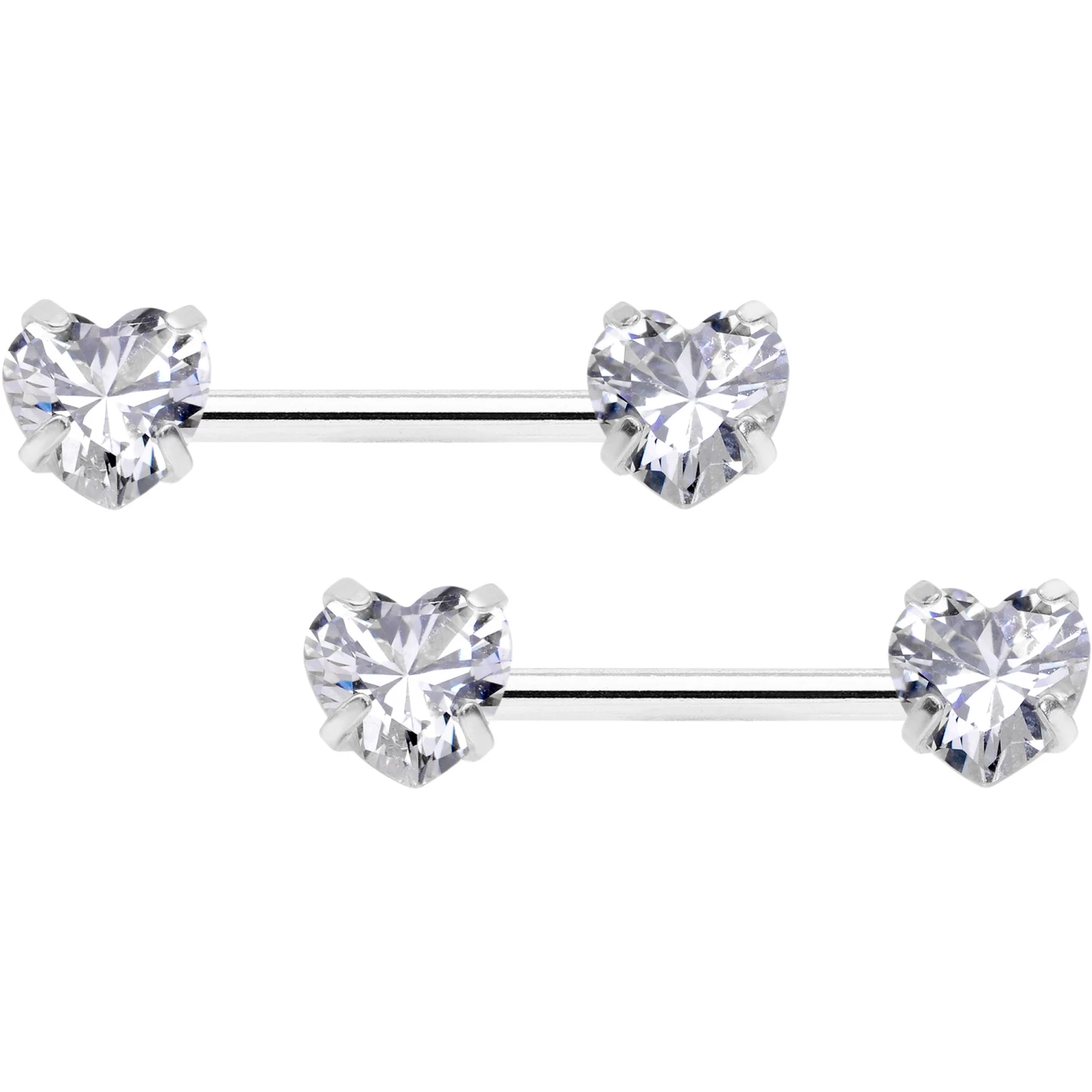 14 Gauge 1/2 Clear CZ Gem Heart Threadless Barbell Nipple Ring Set