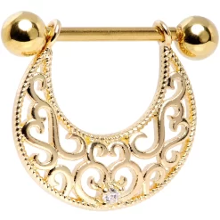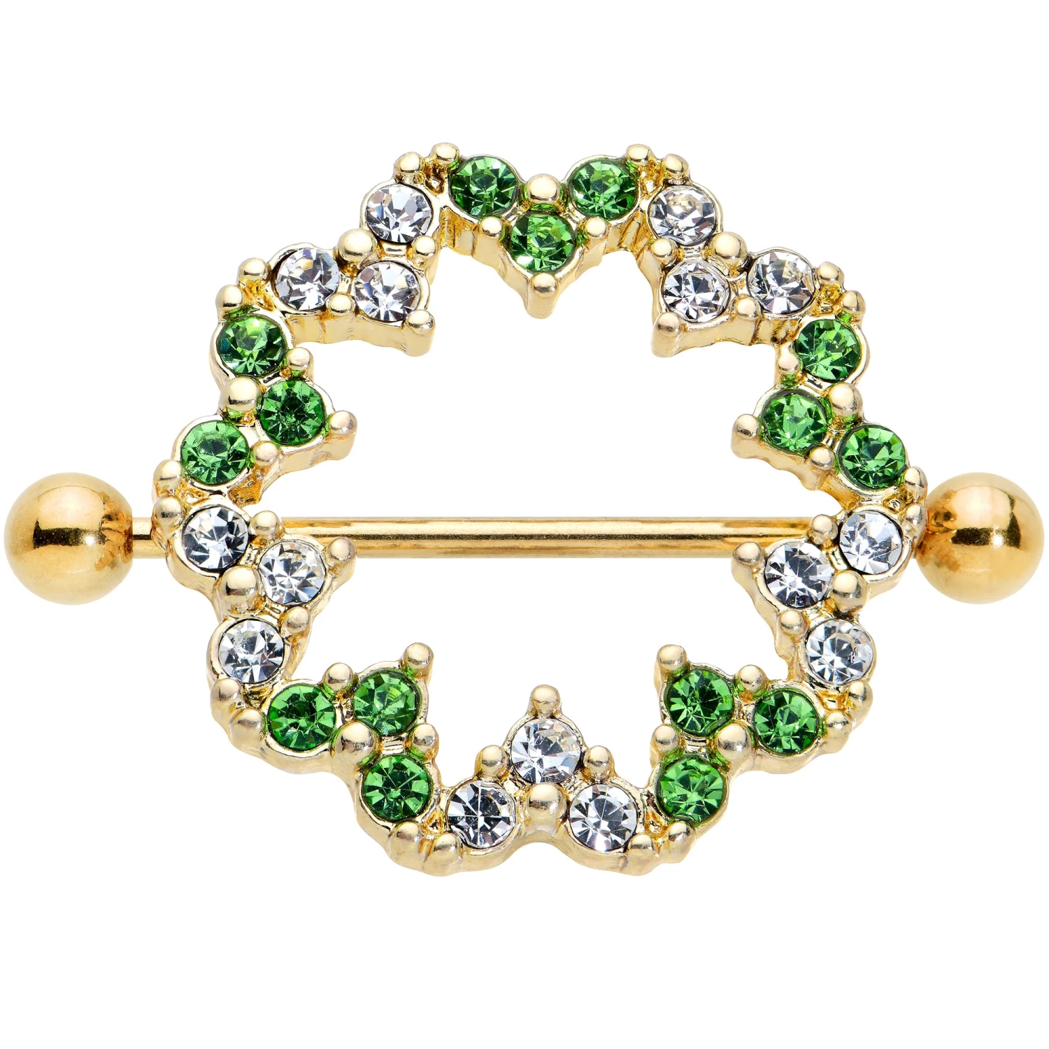 14 Gauge 25mm Gold Tone Clear Green Gem Floral Nipple Shield Set