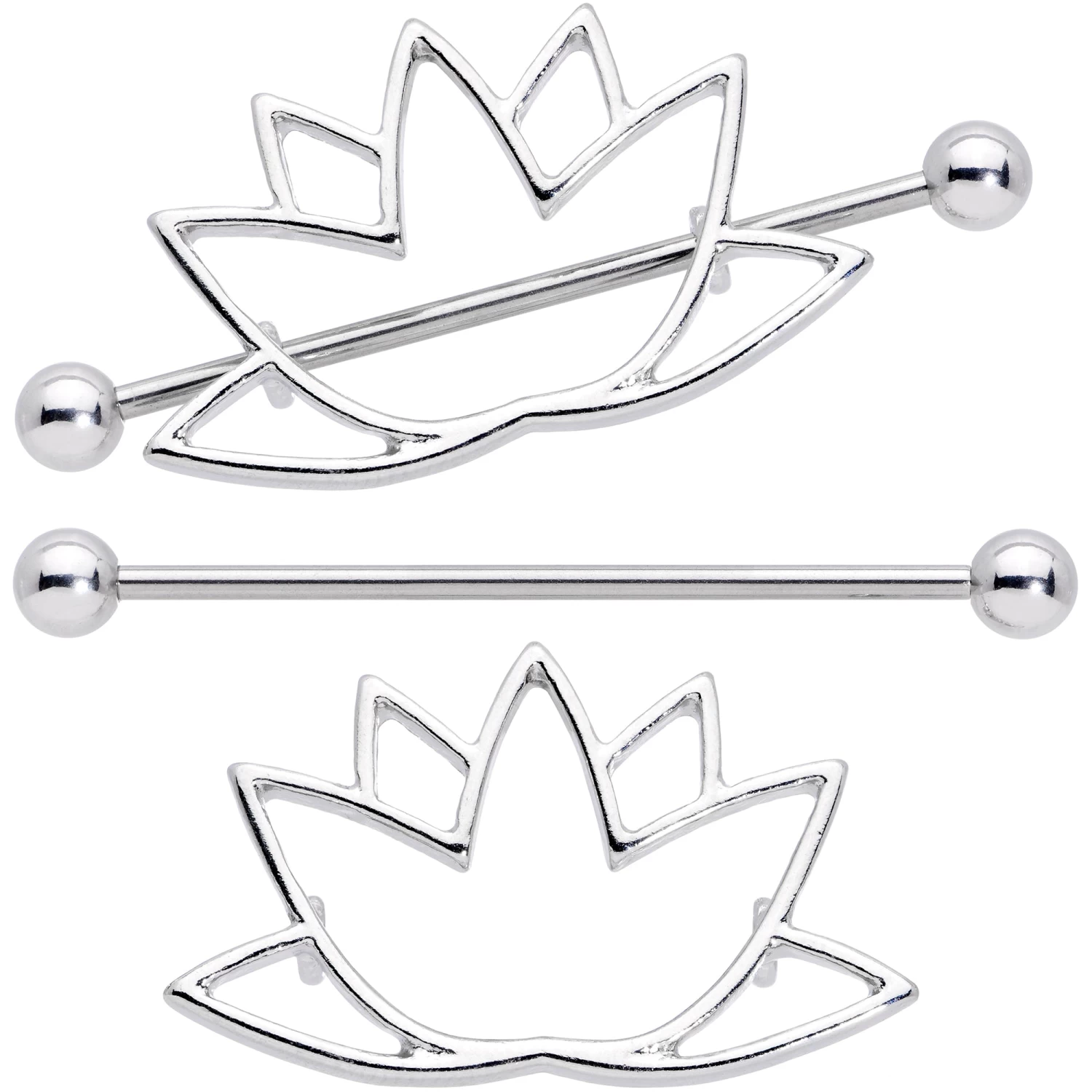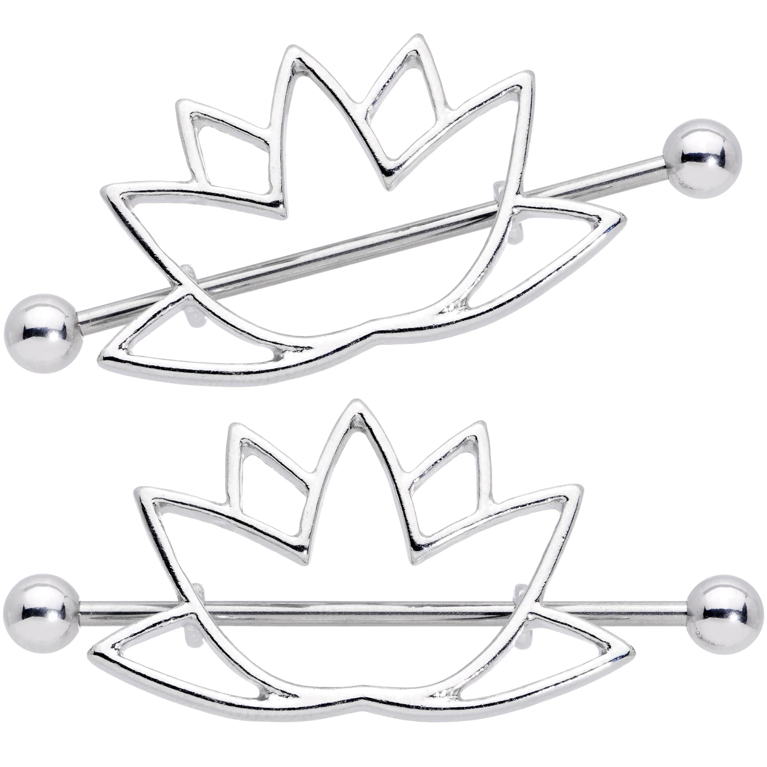 Open your mind to some mystical style with this 14 gauge nipple jewelry! It’s made with 19mm wearable length 316L surgical grade stainless steel straight barbells with 5mm ball ends. They have a total length of 1 1/2″ and the shield portion has a rise of 9/16″. The shields features lotus flowers, completely done in openwork style. They have a gracefully airy style, perfect matching the metaphysical mind! Your nipple piercing jewelry can be as open as your mind with these lovely lotus flower nipple shields. Sold as a set of two.