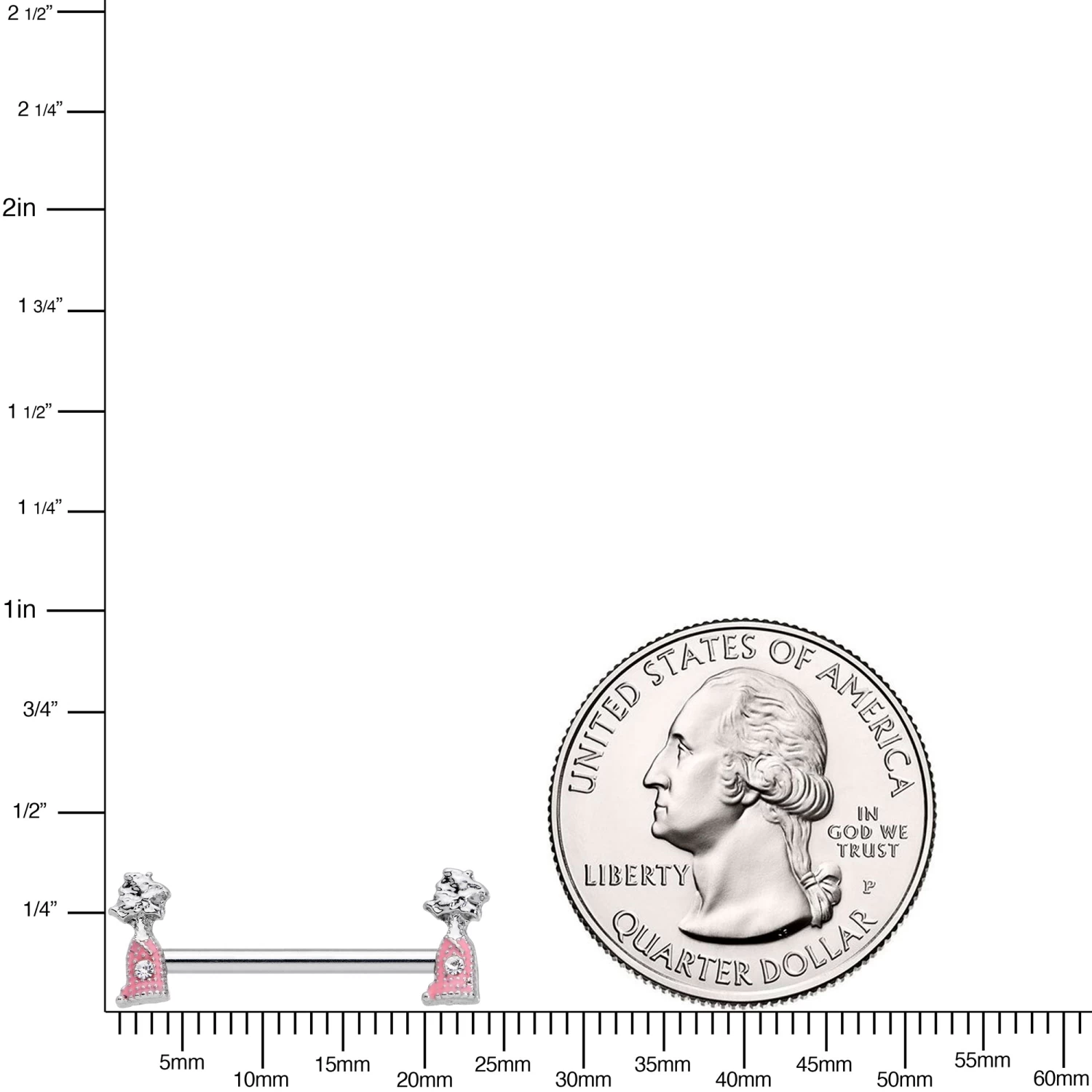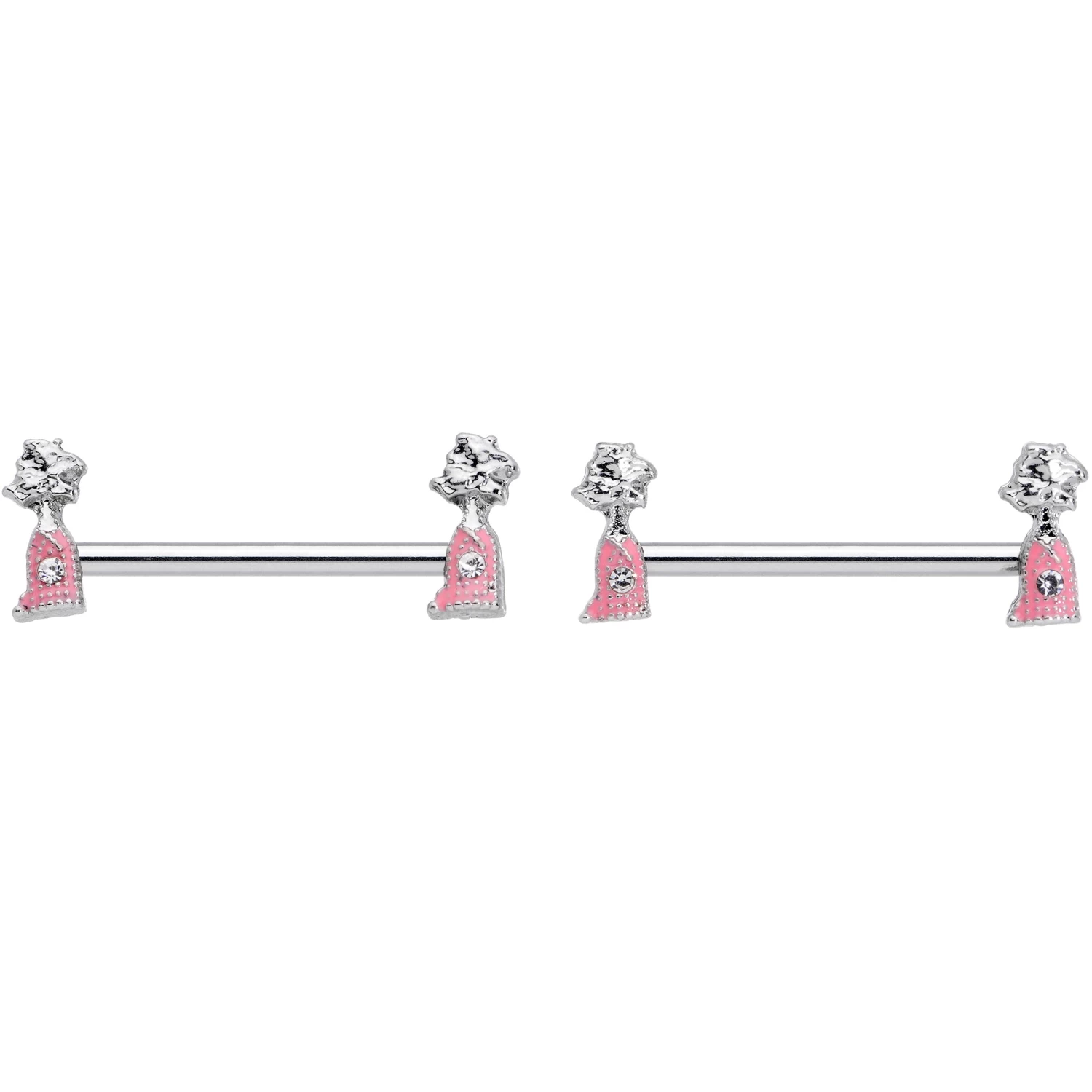 14 Gauge 5/8 Clear Gem Pink Champagne Bottles Barbell Nipple Ring Set