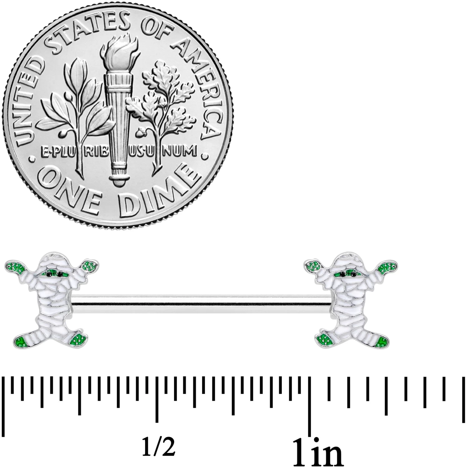14 Gauge 5/8 Green Mummy Halloween Barbell Nipple Ring Set