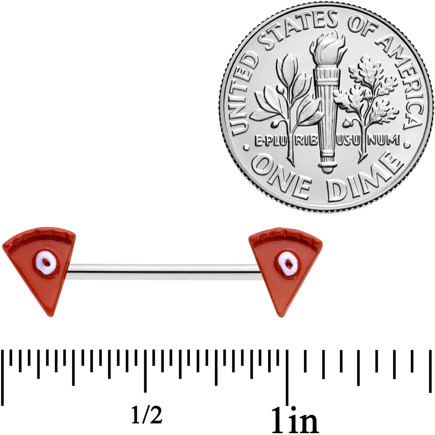 Mmmm…….what’s cooking, good looking? Something delicious for the fall season when you’re wearing these 14 gauge nipple rings! They’re made with 16mm durable 316L surgical grade stainless steel straight barbells. The ends each feature a delicious-looking wedge of pumpkin pie charm embellished with a swirl of white whipped cream on top. This autumn you can give thanks for how gorgeous you look with this tasty little treat in your nipple piercings! Sold as a set of two.