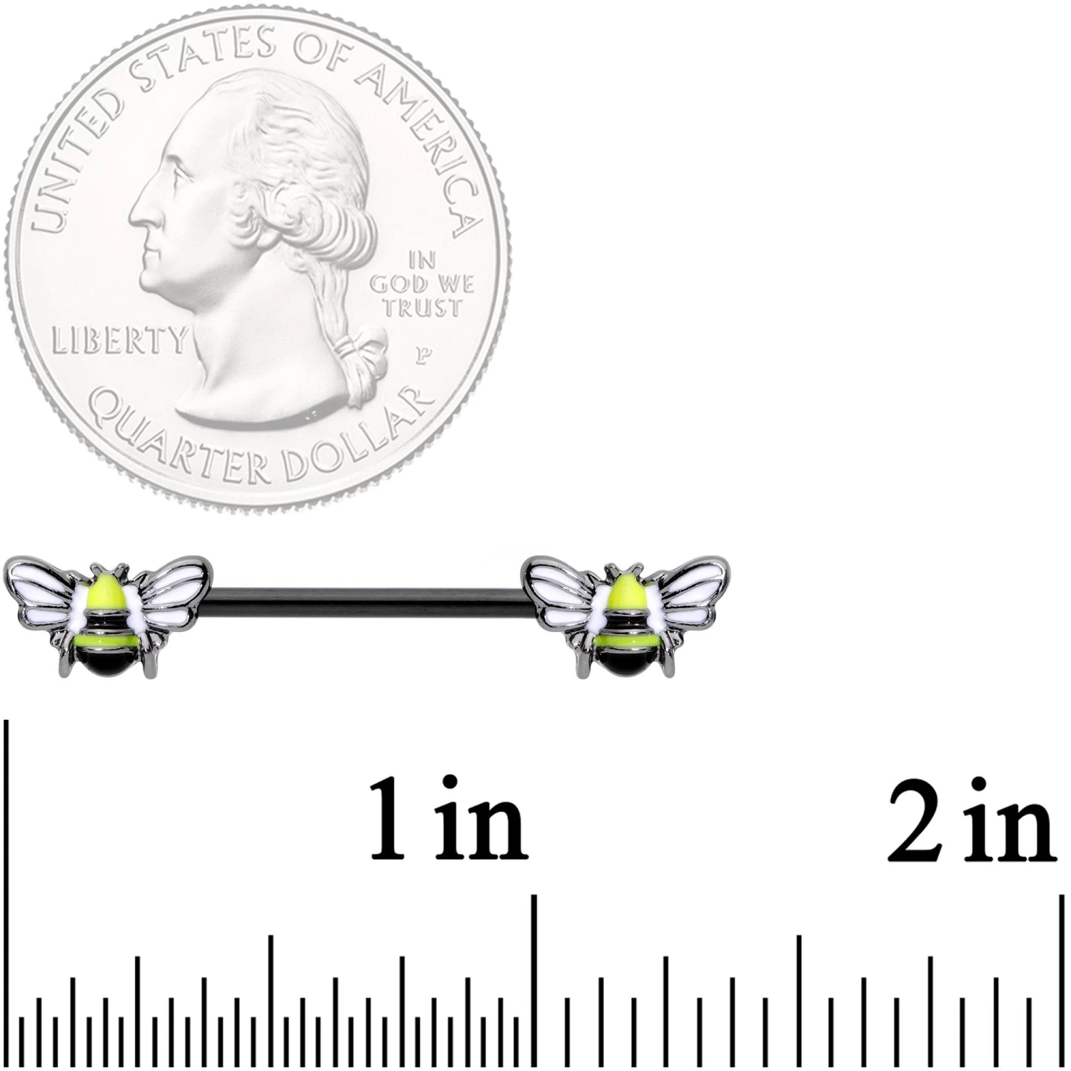 14 Gauge 9/16″ Black Blissful Bumblebee Barbell Nipple Ring Set