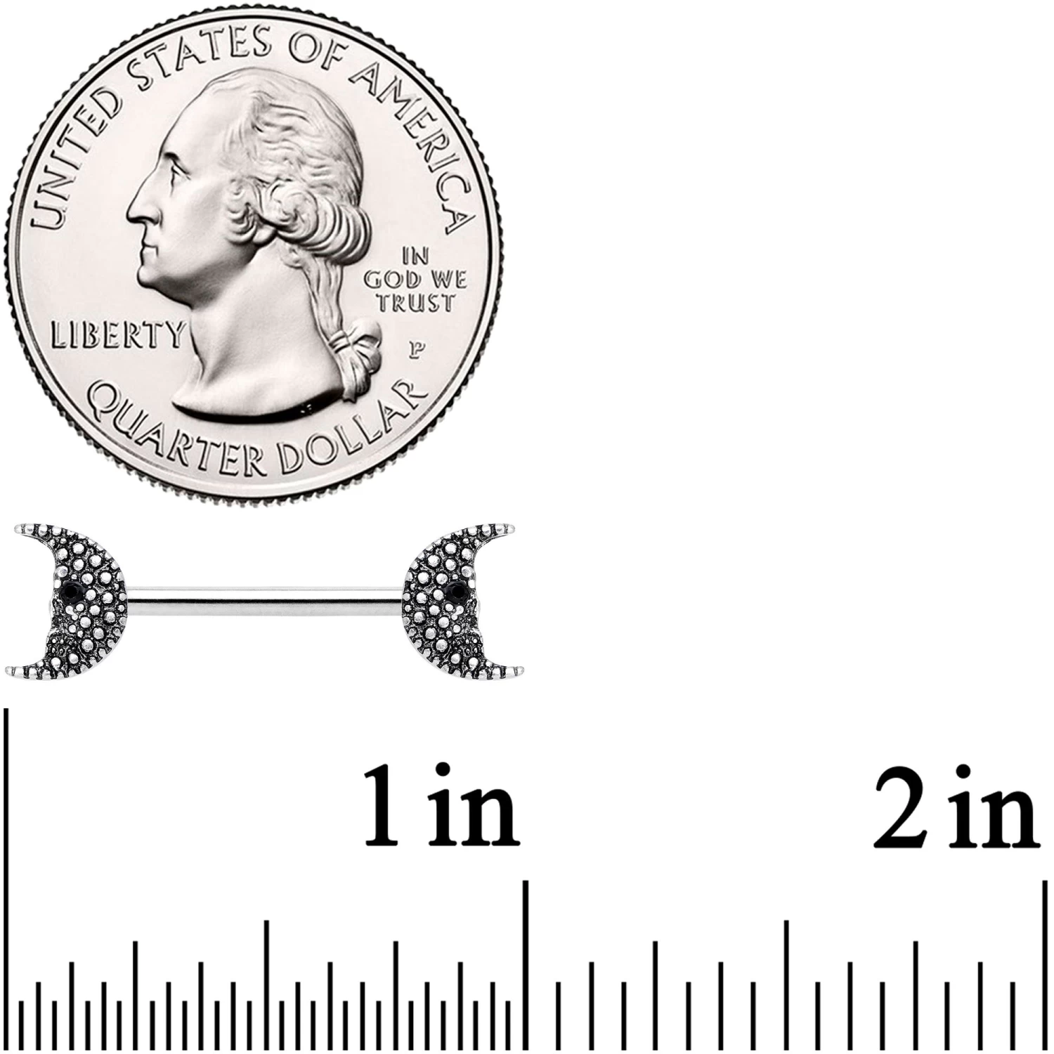 14 Gauge 9/16 Black Gem Skull Crescent Moon Barbell Nipple Ring Set
