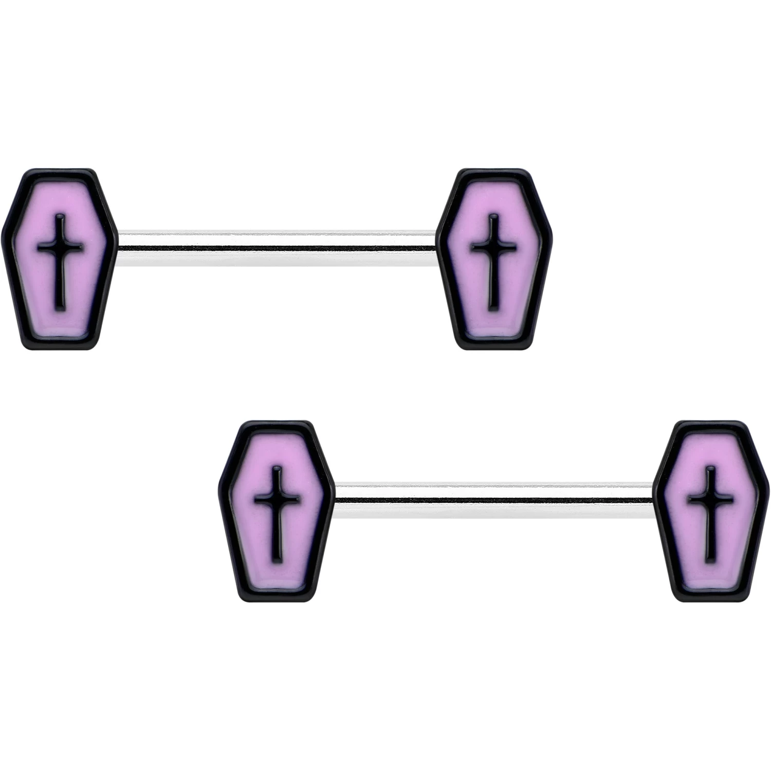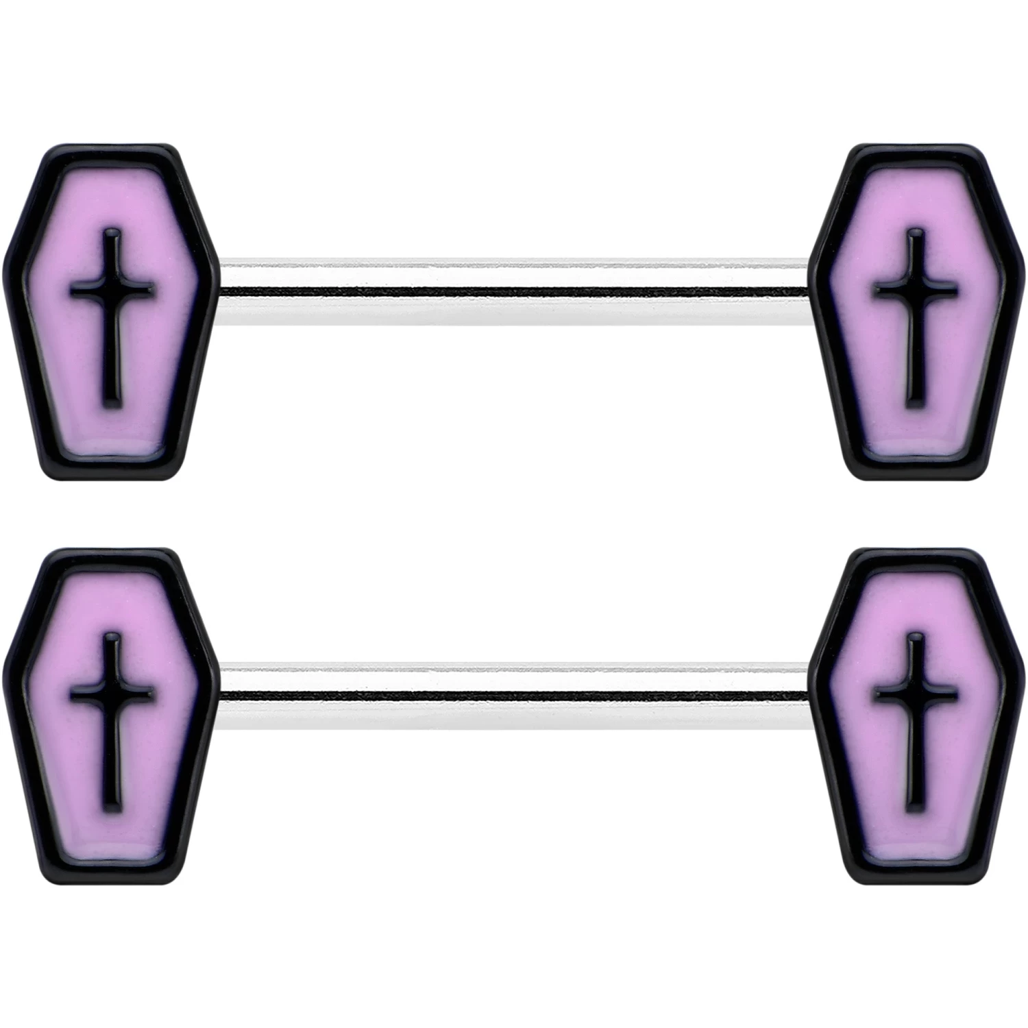 14 Gauge 9/16 Creepy Coffin Lt Purple Glow in the Dark Nipple Ring Set
