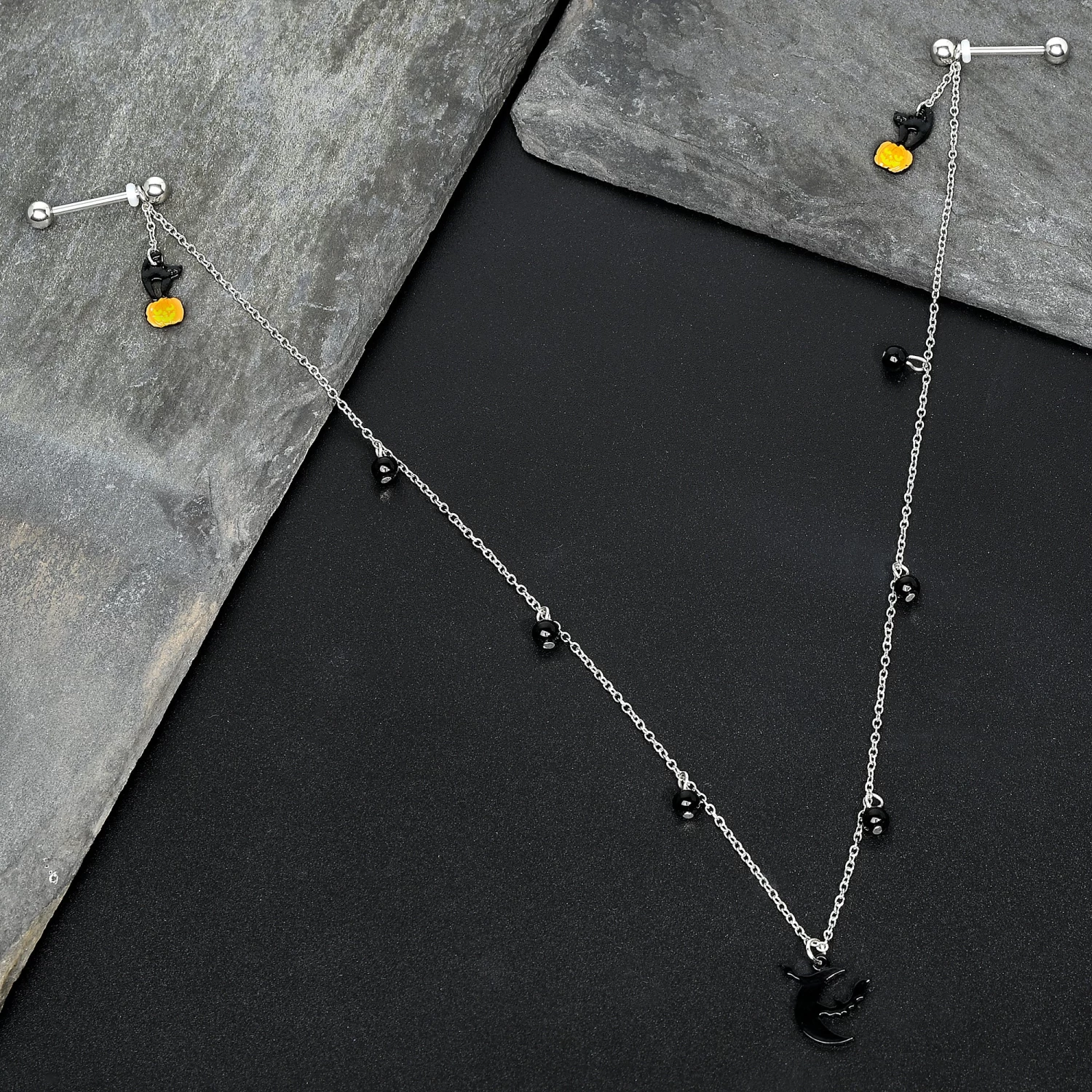 14 Gauge 9/16 Pumpkin Black Cat Moon Bats Dangle Halloween Nipple Chain