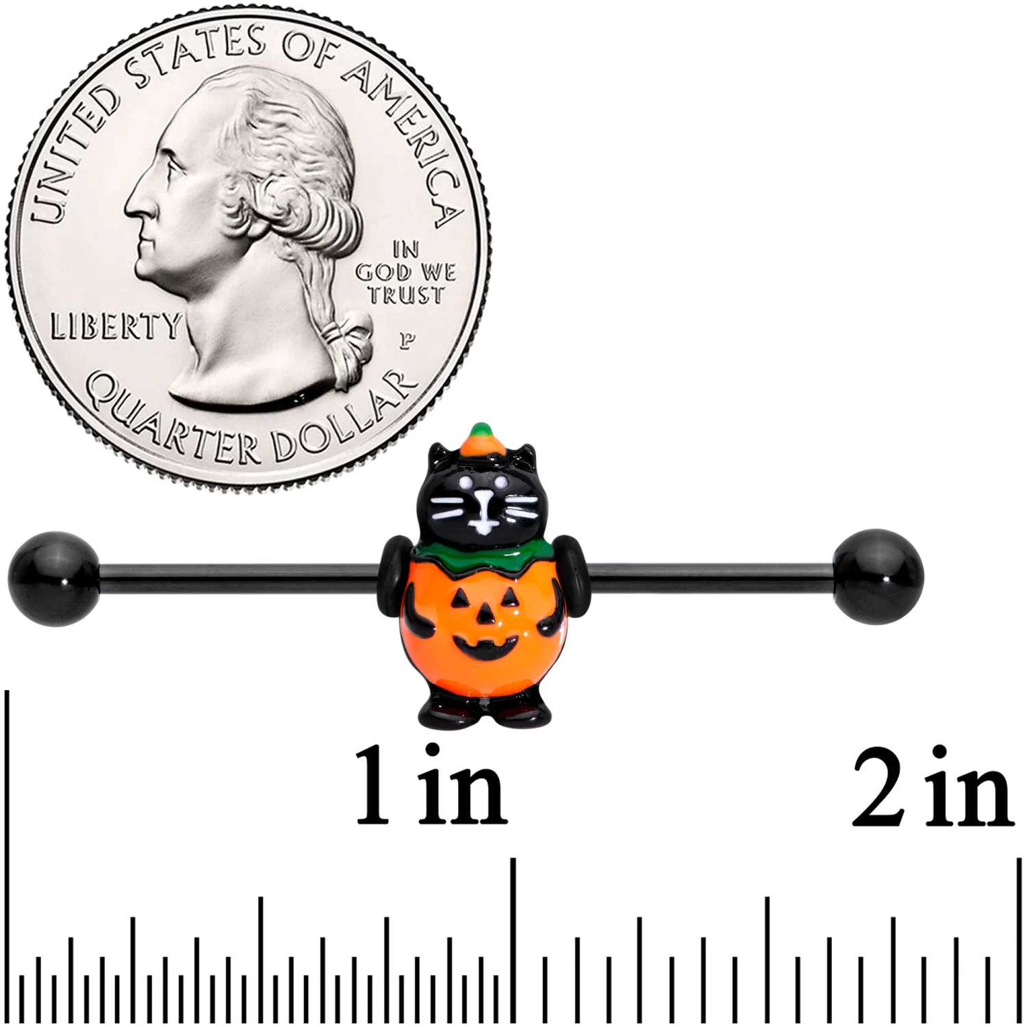 14 Gauge Black Cat Pumpkin Halloween Industrial Barbell 38mm