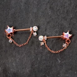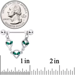 A witch seems to have stopped by and left a little Halloween care package hanging from this 14 gauge helix barbell! It’s made with a 1 1/2″ durable 316L surgical grade stainless steel straight barbell with 5mm ball ends. It features a black witch’s hat charm with a green hatband. Dangling below it are a black cat and an orange Halloween Jack-O-Lantern charm. Everything you need for Halloween all in one place – that was one generous witch! And you can slide the charm up and down the barbell industrial to get just the look you’re after. So let your industrial piercing make a little magic with this charming Halloween industrial earring!