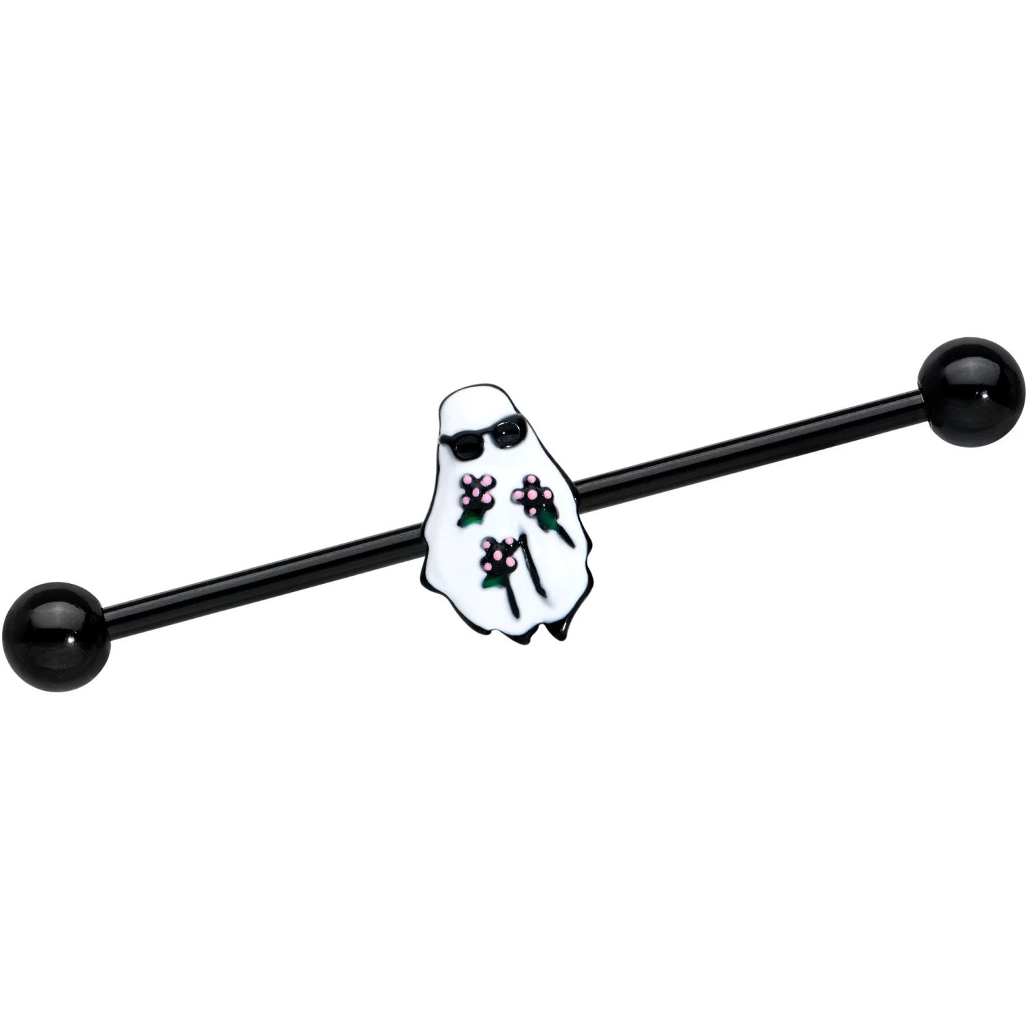 14 Gauge Black Hipster Ghost Halloween Industrial Barbell 38mm
