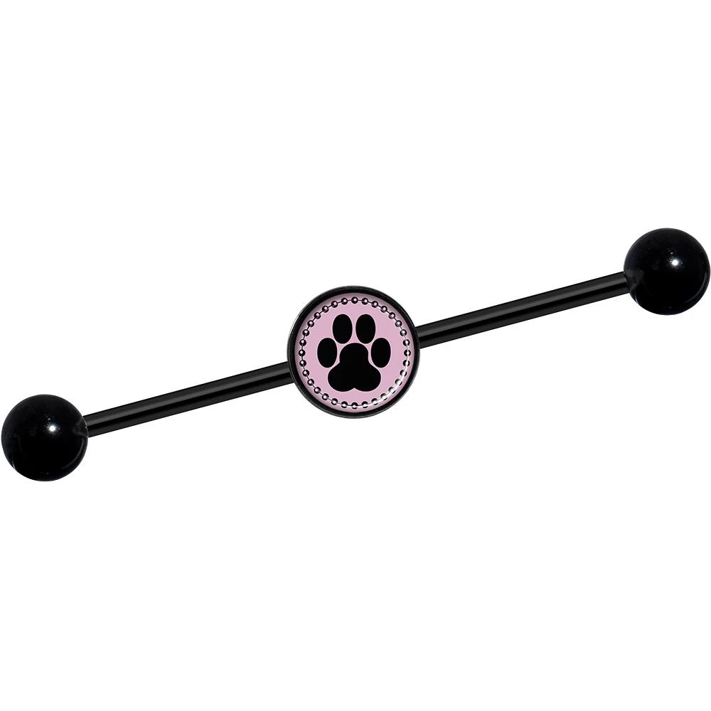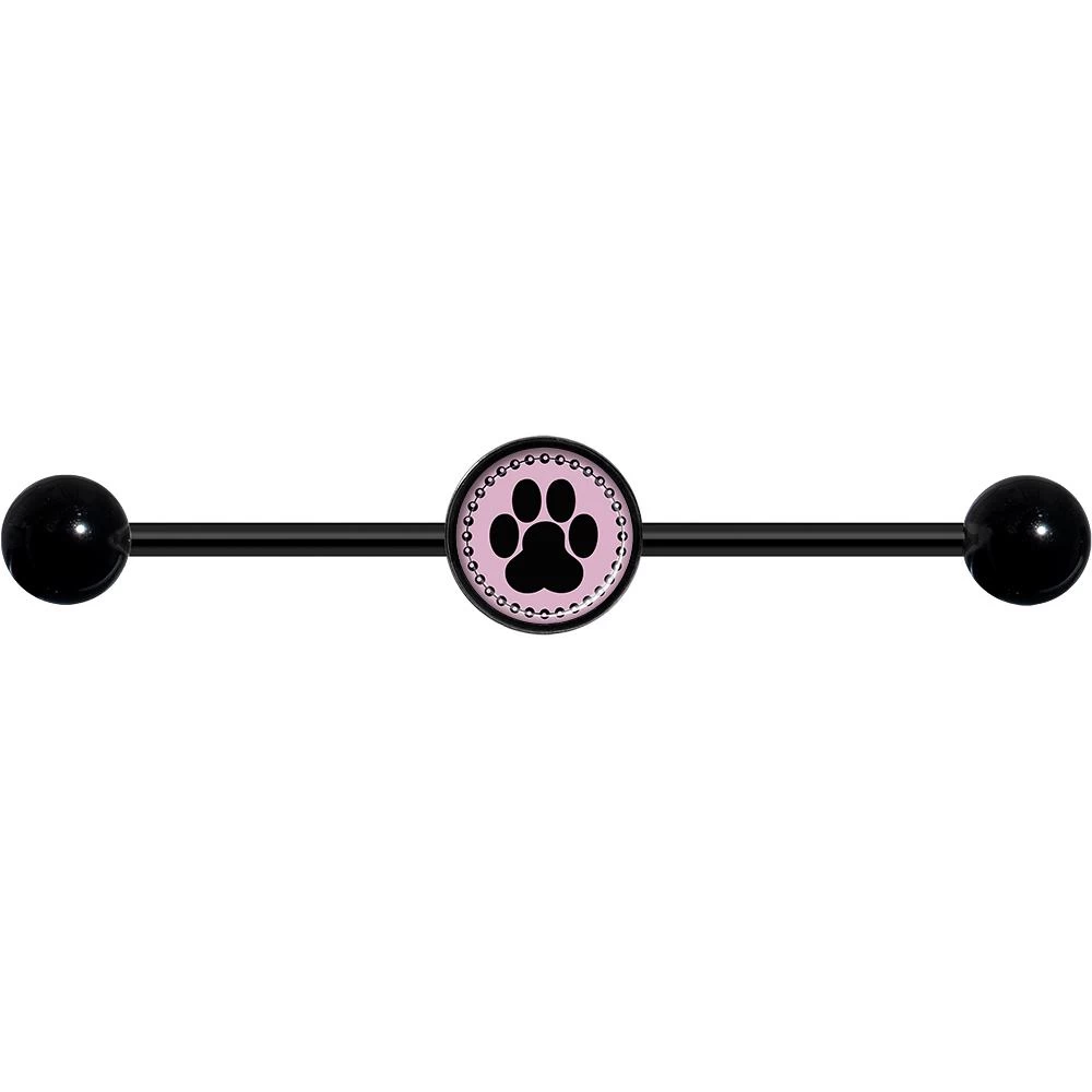 14 Gauge Black on Pink Paw Print Black Industrial Barbell 37mm
