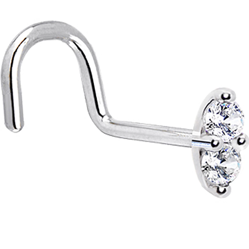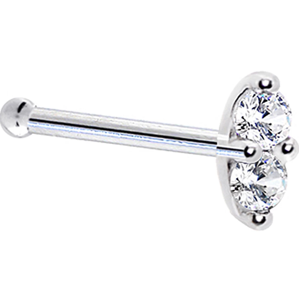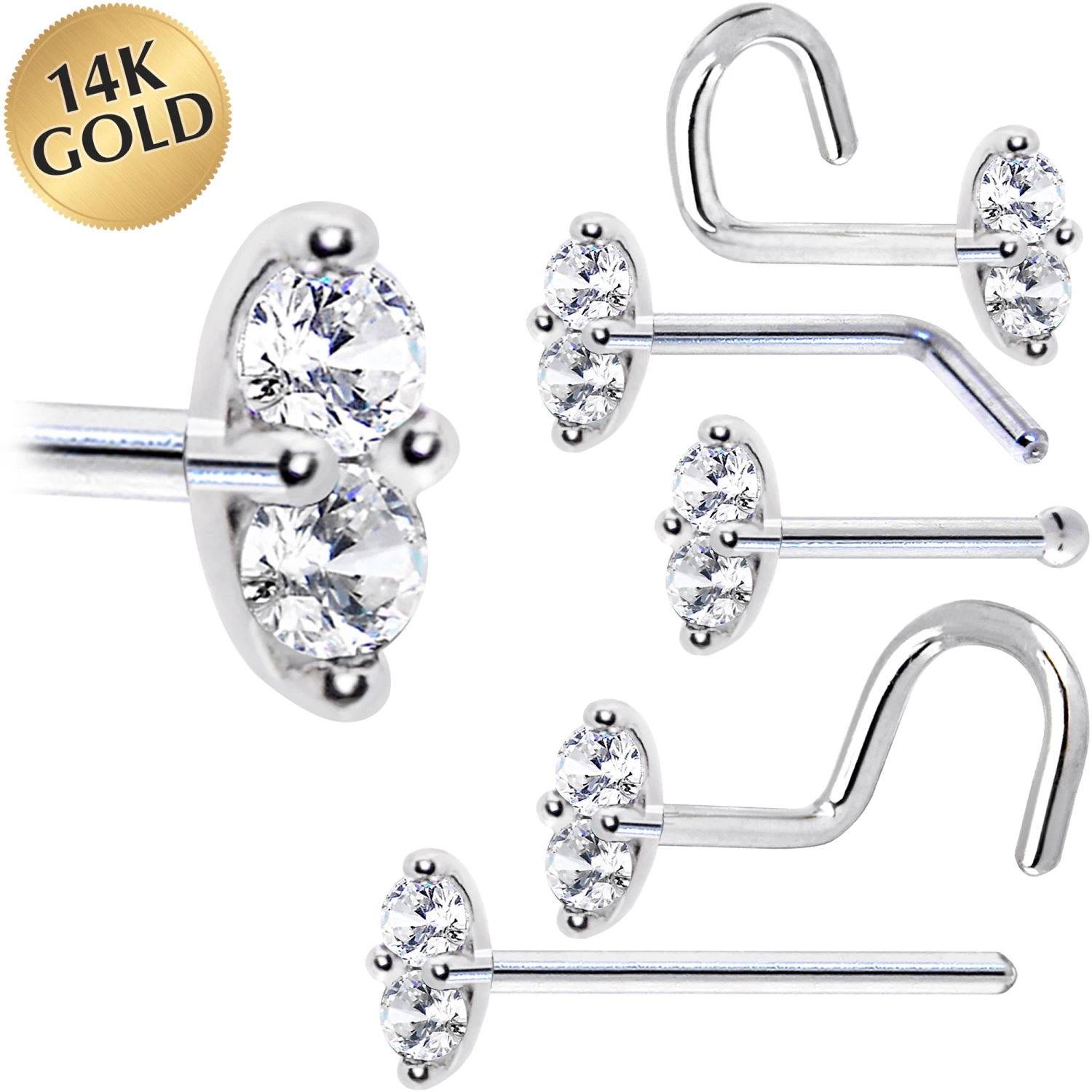 Solid gold double marquise cubic zirconia nose ring. Artisan handmade 14kt white gold nose ring with two marquise prong set cubic zirconia stones. Made in the USA factory direct.