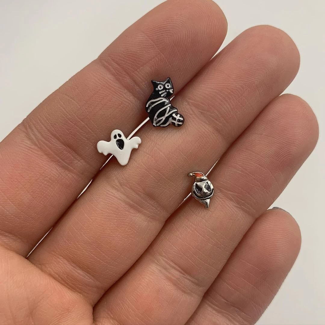 16 Gauge 1/4 Black Cat Ghost Halloween Cartilage Tragus Set of 3