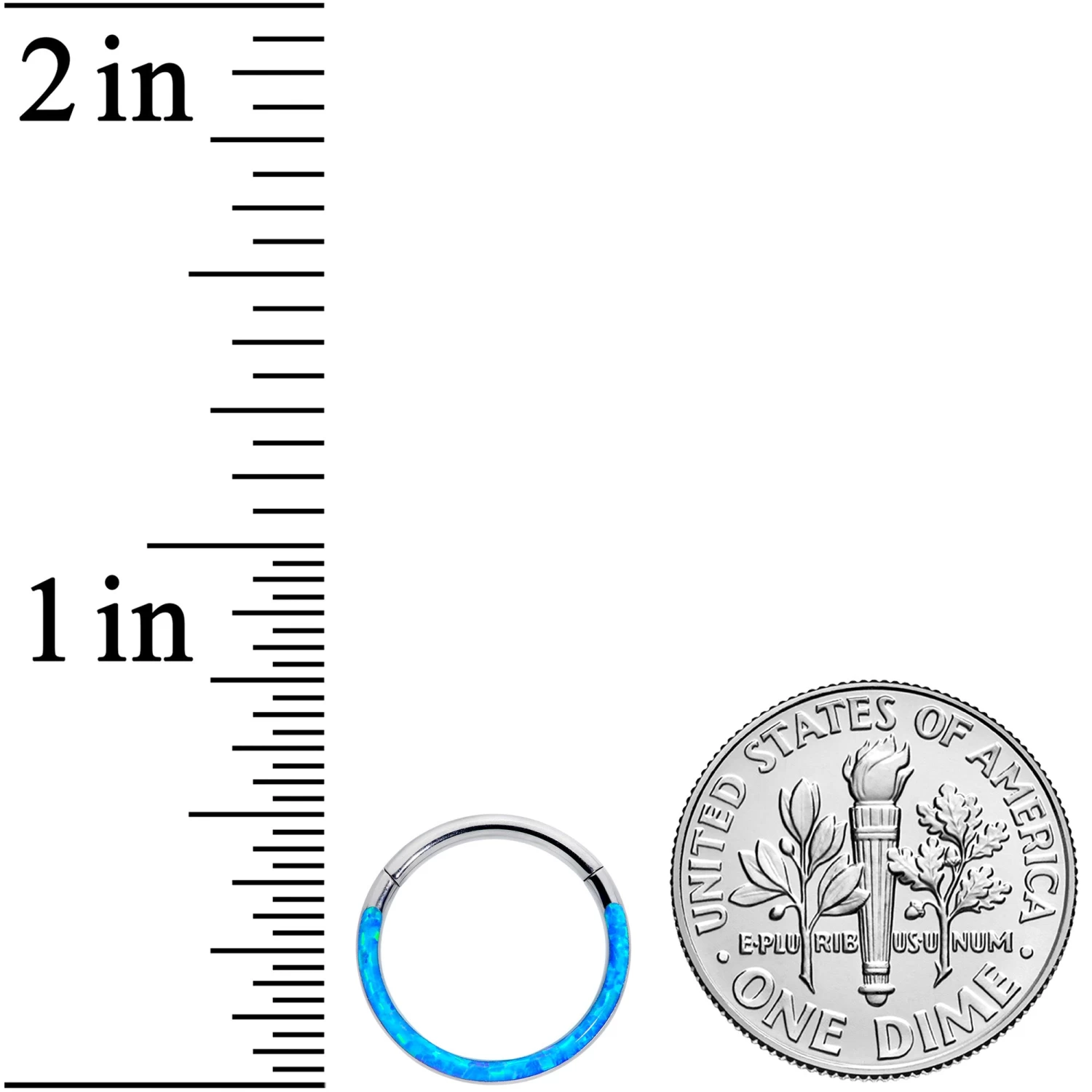 Style, ease, and beautiful color – this 16 gauge cartilage jewelry has it all! It’s made with a 10mm solid grade 23 implant grade titanium hinged circular ring. The front is lined with blue synthetic opal for a look that’s on-trend and wonderfully colorful. It also features a non-removable, hinged segment that makes insertion and removal a snap. And you can rock this ring in multiple piercings including helix, tragus, and septum. Keep it simple and simply elegant with this understated cartilage piercing ring!