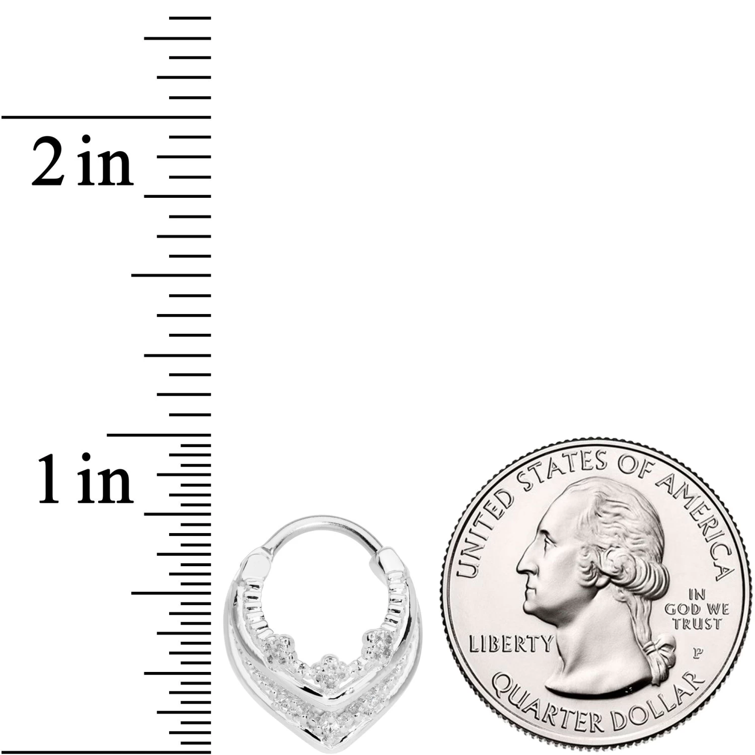 If you like a little bit of eye-catching style in your septum piercing then you will love this 16 gauge septum jewelry! Made with a 10mm durable 316L surgical grade stainless steel hinged curved barbell, this nose ring features a hinged barbell for easy insertion and removal as well as a triangular bottom arc that will look feminine without being frilly.