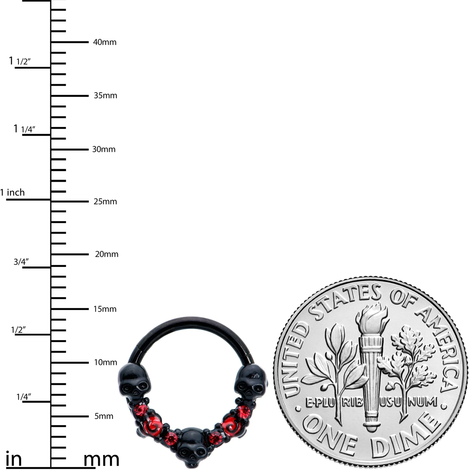 16 Gauge 3/8 Red Clear CZ Gem Black Skull Halloween Hinged Segment Ring