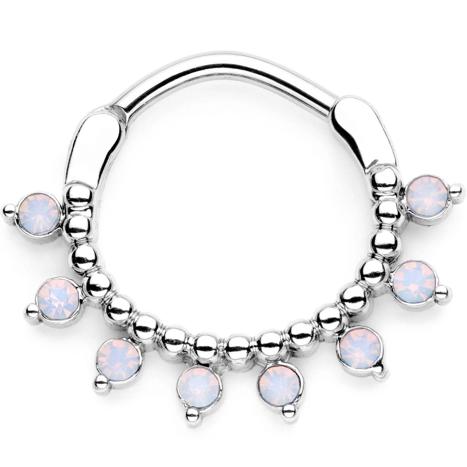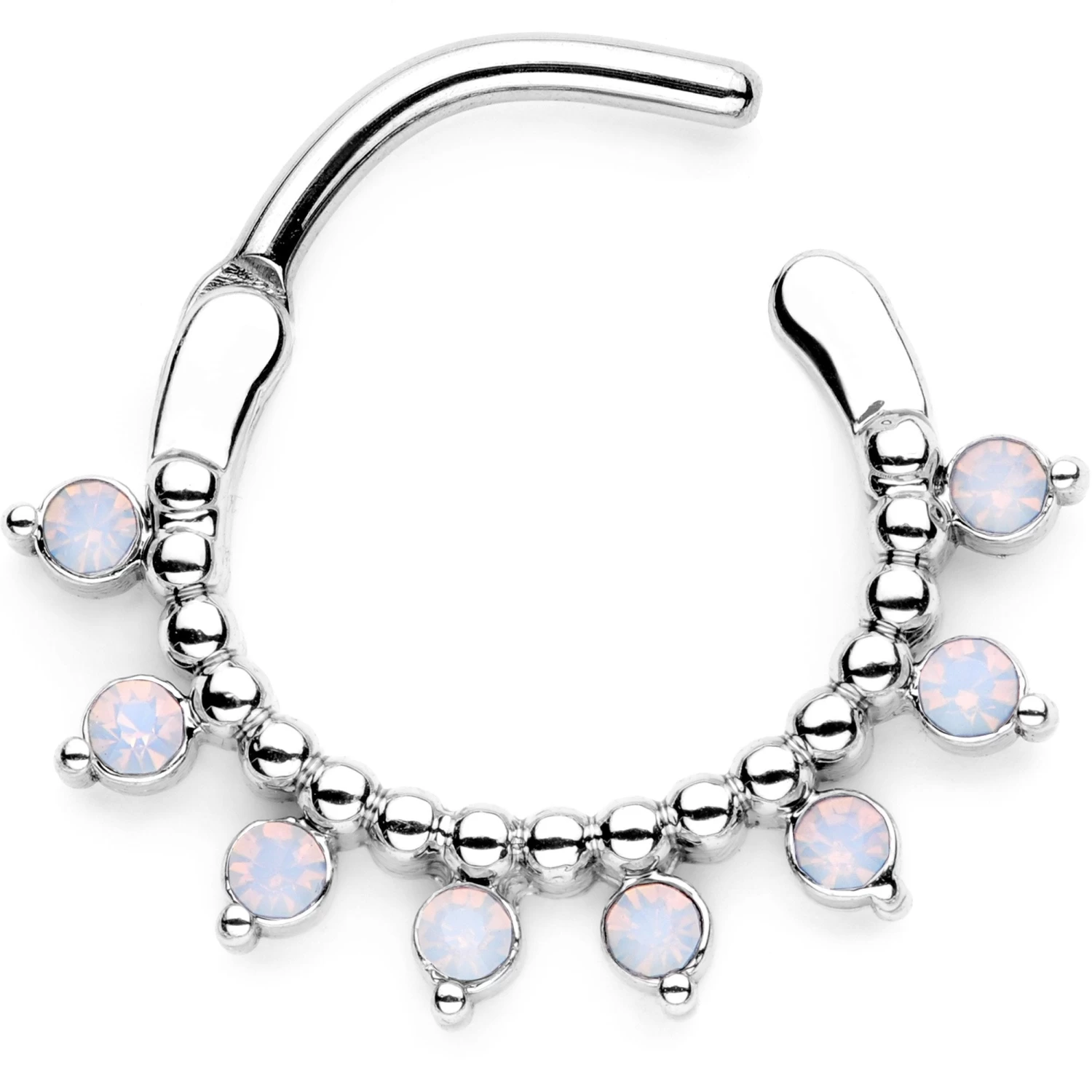 White Faux Opal Twisted Horseshoe Hinged Circular Ring Set