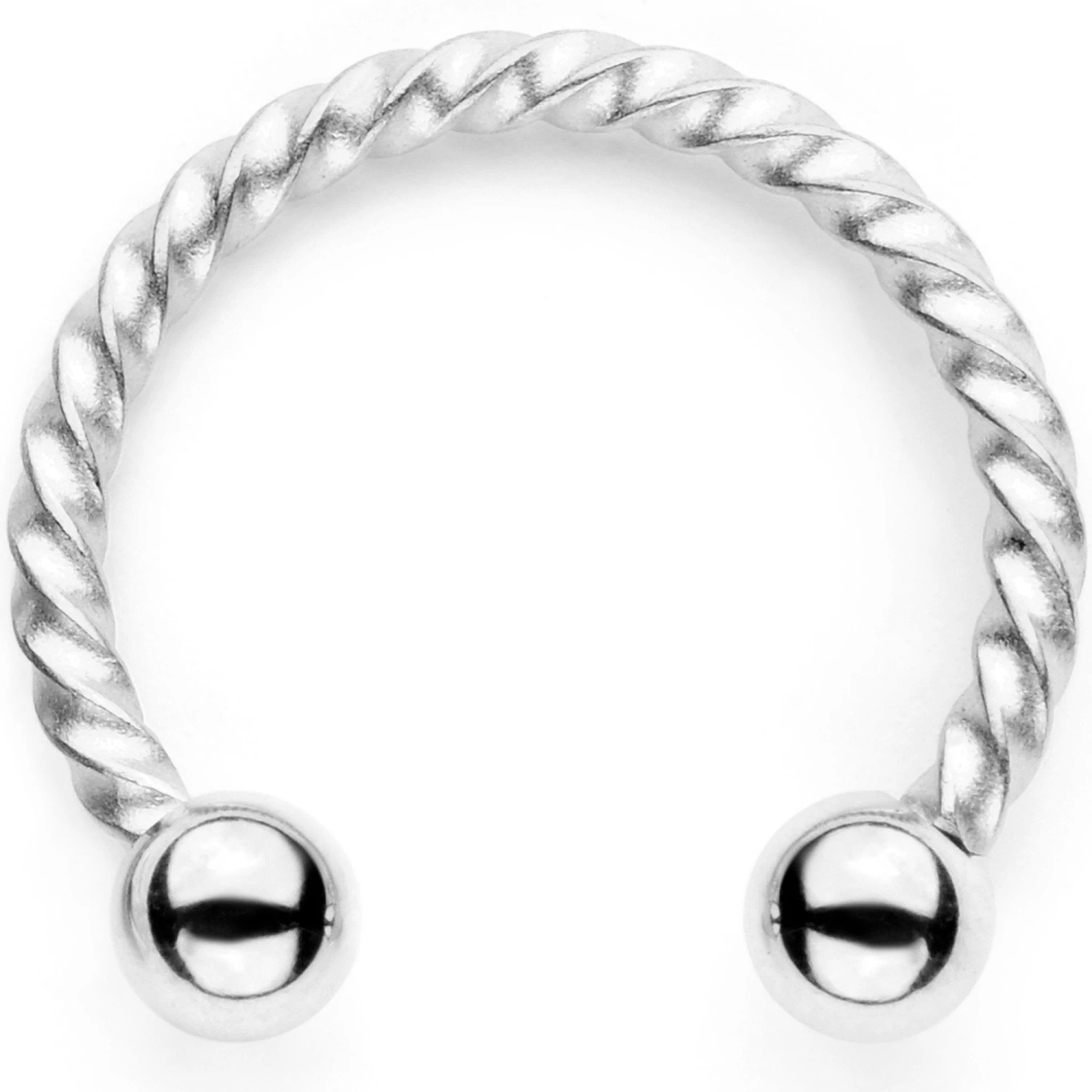 Expand your septum jewelry collection with this set of three unique septum rings! This set features two 16 gauge horseshoe barbell rings, one with a twisted design, and one hinged circular ring. All three are 3/8″ and made with durable 316L surgical grade stainless steel. The hinged circular ring comes complete with an iridescent white faux opal for that extra bit of bling! Sold as a set of three.