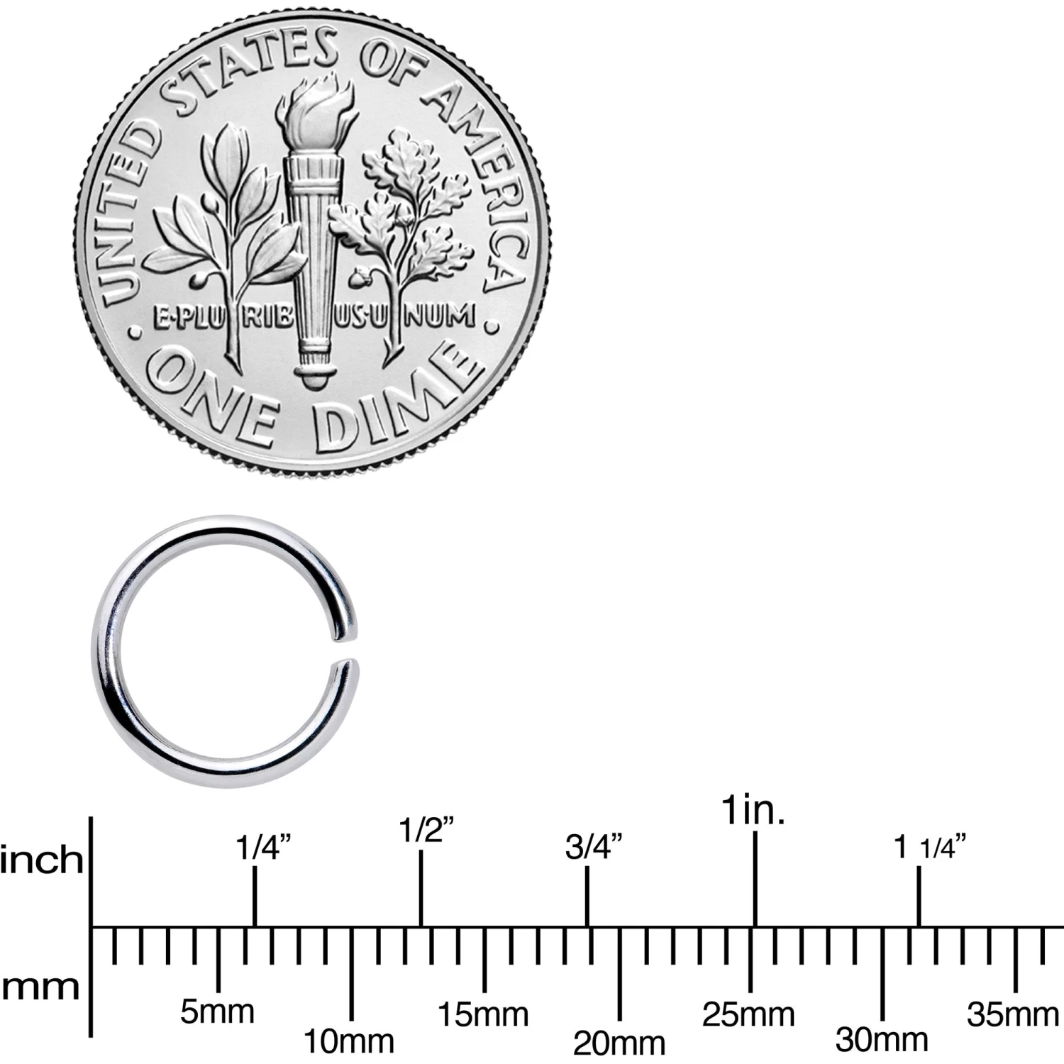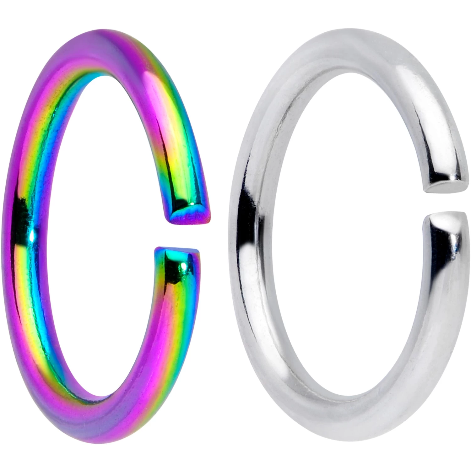 Whether you have multiple cartilage piercings and prefer a matching look or are simply prone to losing things, this set of 16 gauge cartilage rings has you covered. Six are made with 8mm durable 316L surgical grade stainless steel circular rings and the other six are made with 8mm rainbow anodized over 316L surgical grade stainless steel circular rings for a colorful and comfortable feel. This cartilage jewelry is super easy to insert and remove – simply twist the ring open, insert, and then twist gently shut again. And you can rock these rings in multiple piercings including lip, helix, tragus, daith, rook, some eyebrow piercings, and stretched lobes! Sold as a set of twelve.