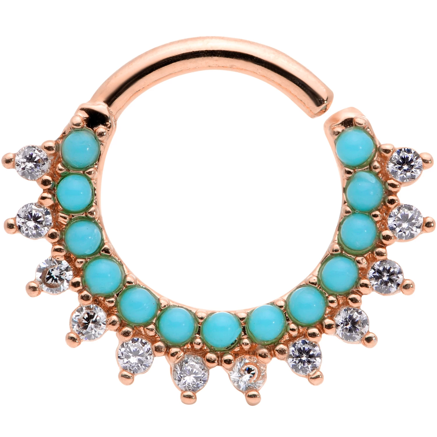 16 Gauge 5/16 Turquoise Rose Gold Tone Western Bendable Daith Cartilage