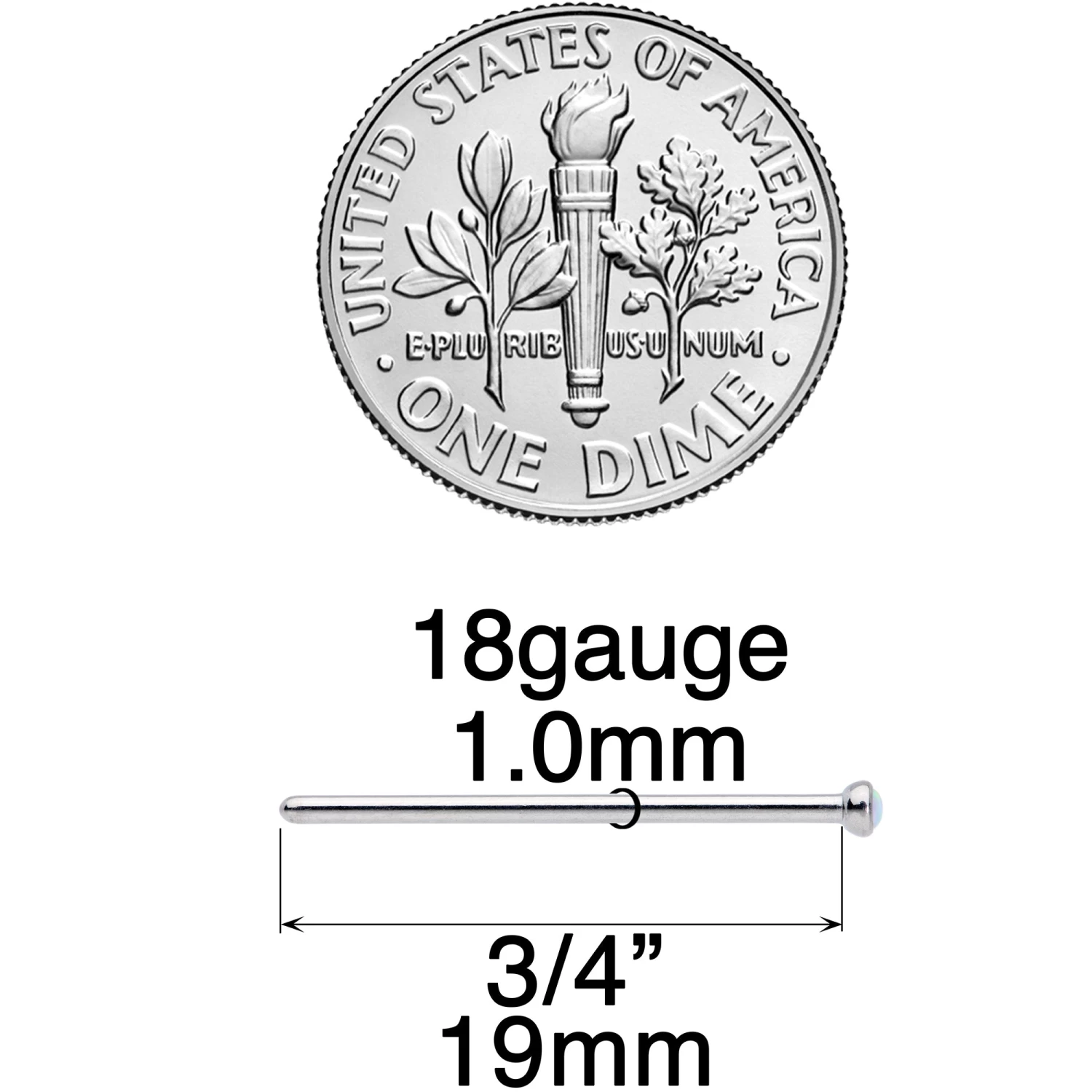 18 Gauge (1mm), 3/4″ (19mm), Solid Grade 23 Implant Grade Titanium Post, 2mm Synthetic Opal