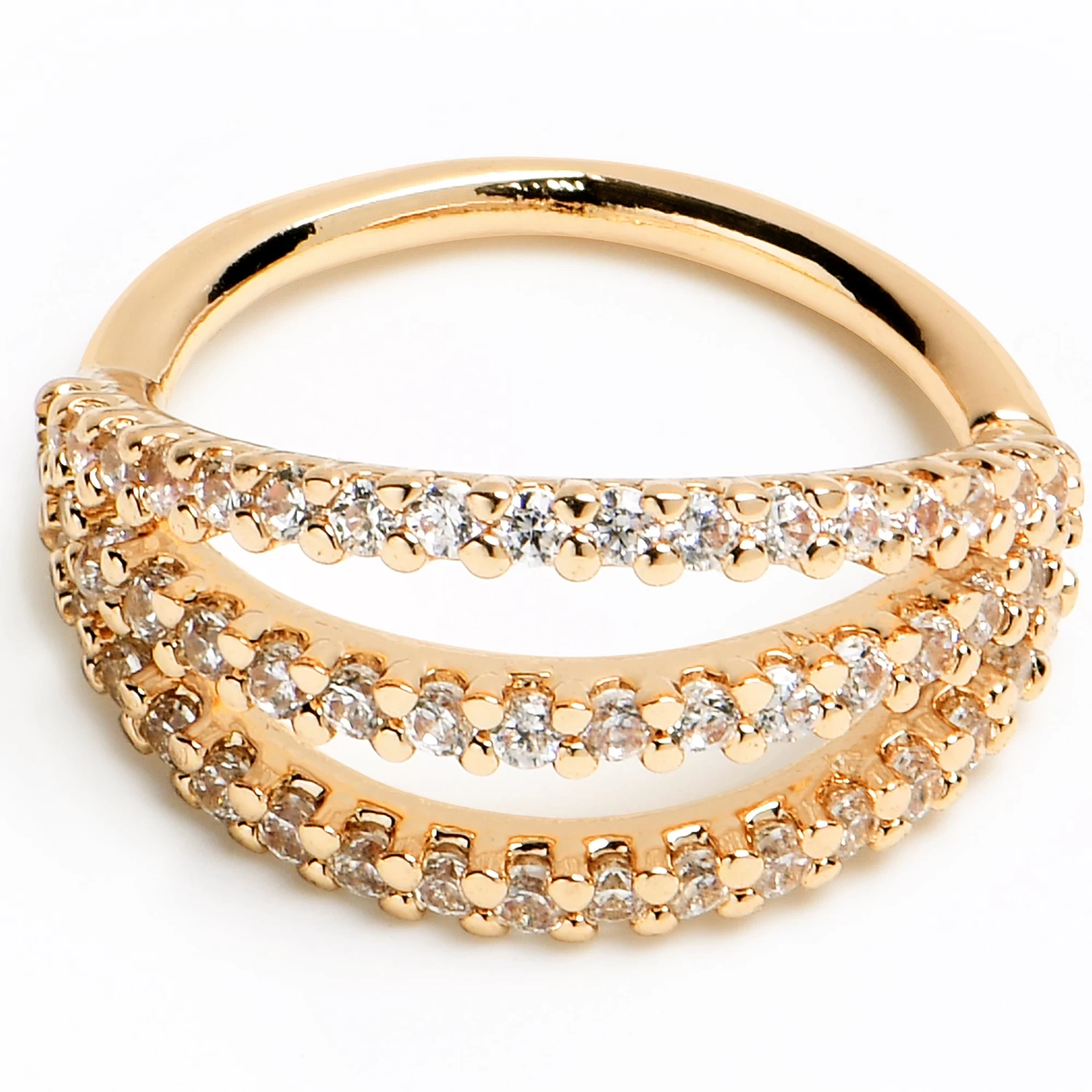 18 Gauge 3/8 Clear CZ Gem Gold Tone Faux Triple Hoop Closure Ring