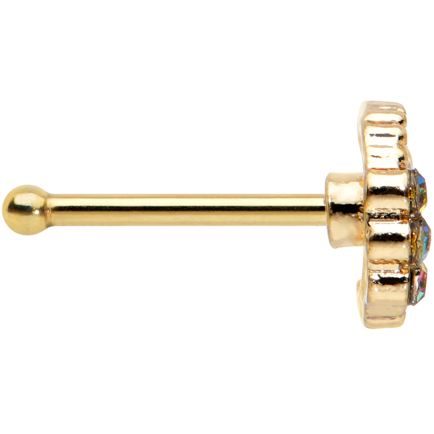 20 Gauge 1/4 Aurora Gem Gold Tone Owl In Moon Nose Bone