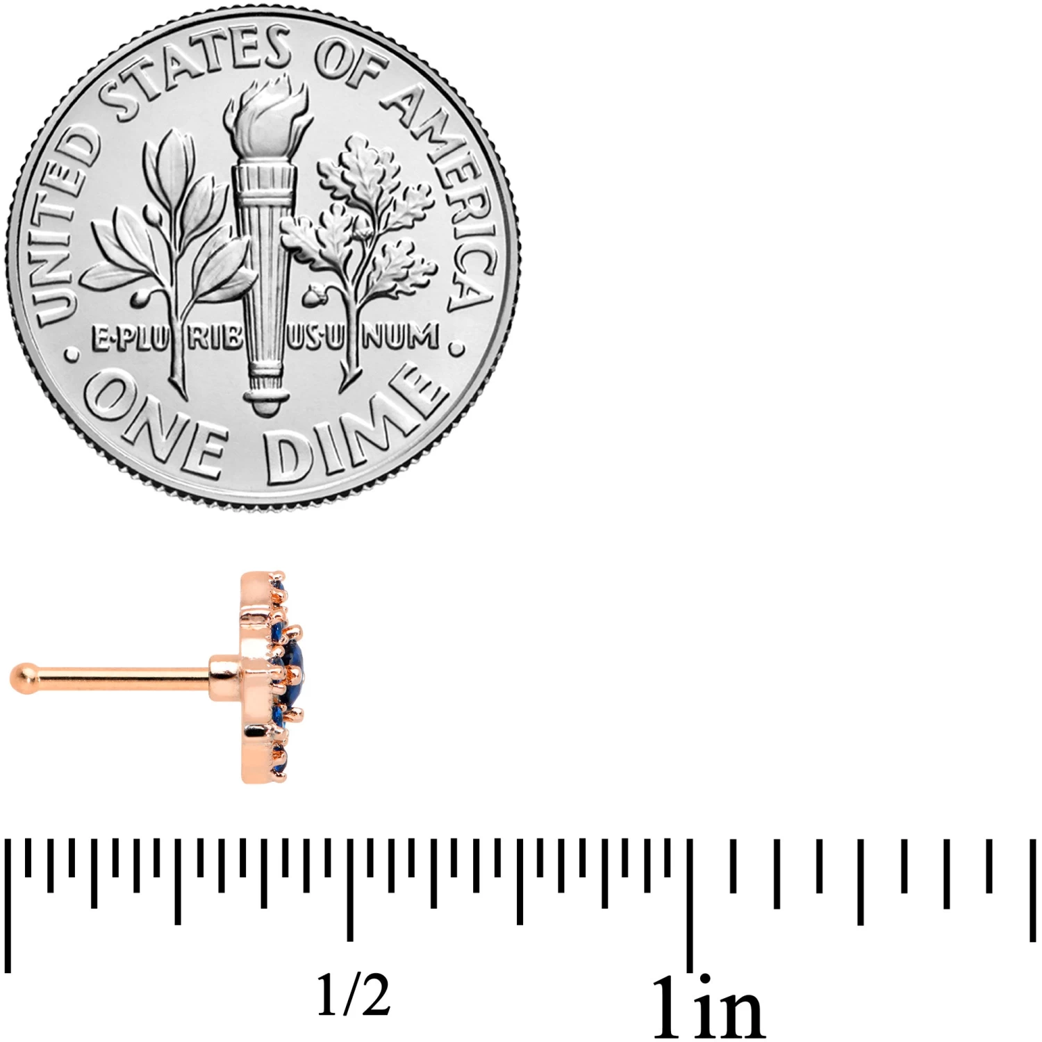 20 Gauge 1/4 Blue Gem Rose Gold Tone Wicked Web Nose Bone