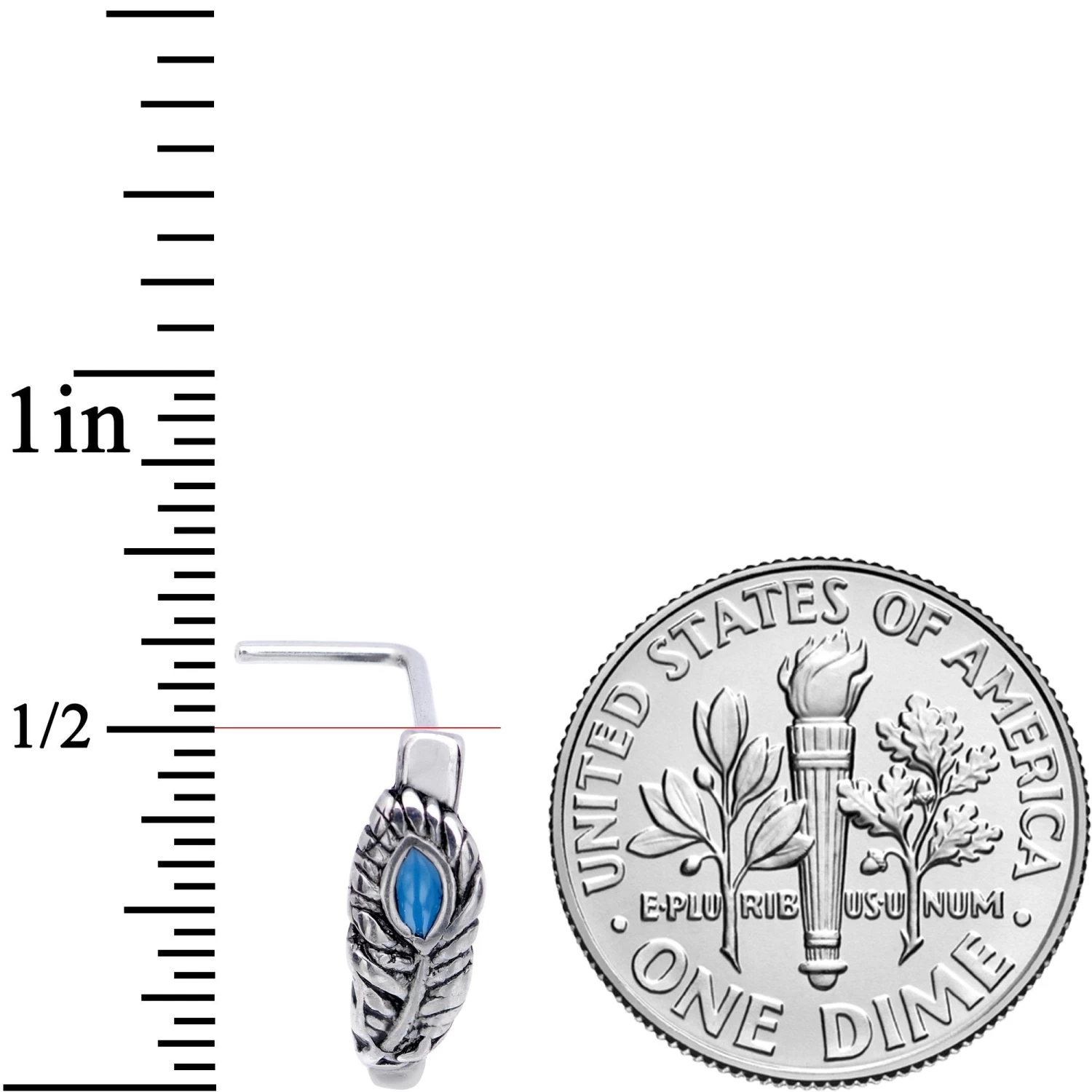 20 Gauge 1/4″ Southwest Blue Feather Faux Hoop L Shaped Nose Hoop
