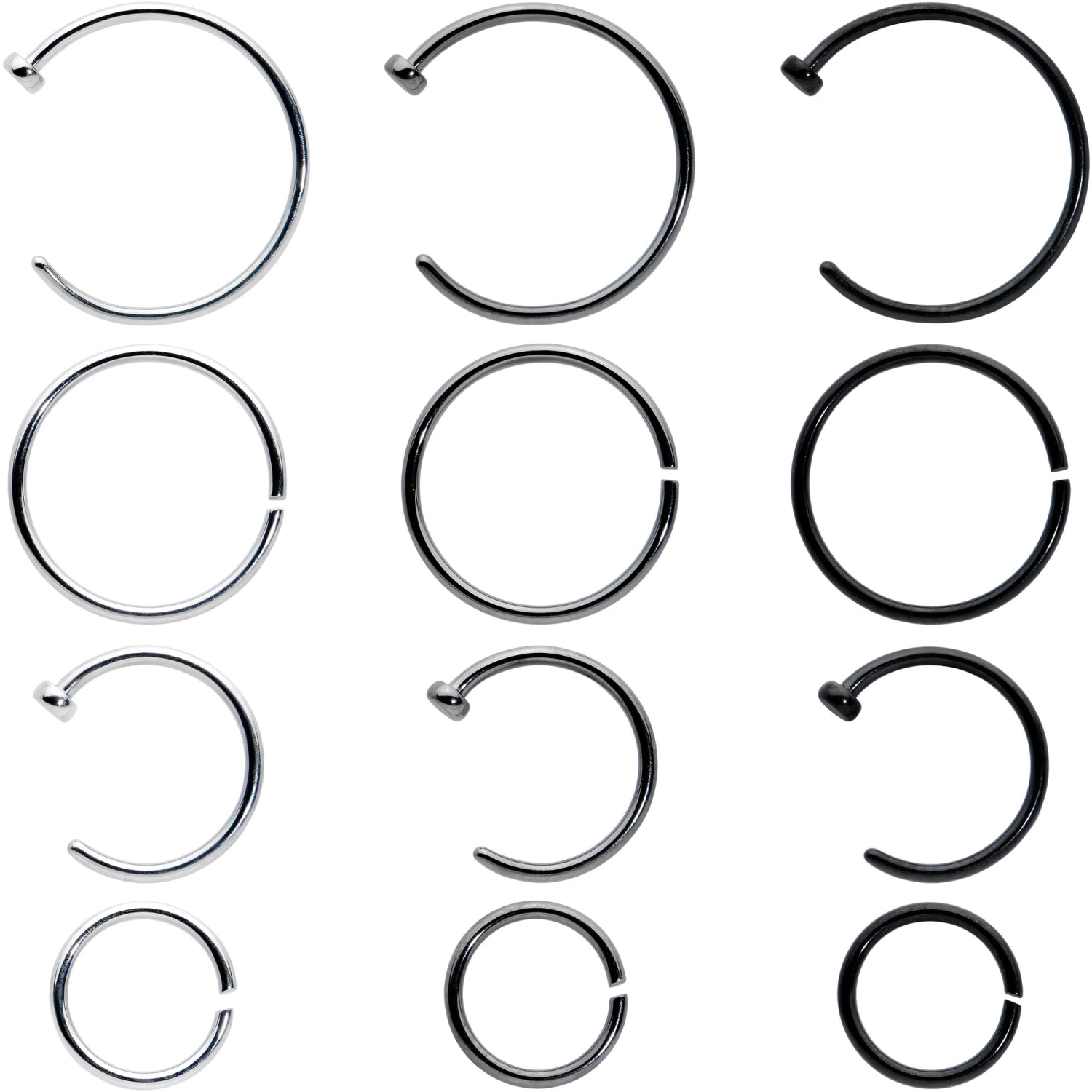 20 Gauge 12 Pack ASTM F-136 Titanium Hoop Nose Ring Septum Cartilage Ear Hoop Earring Set