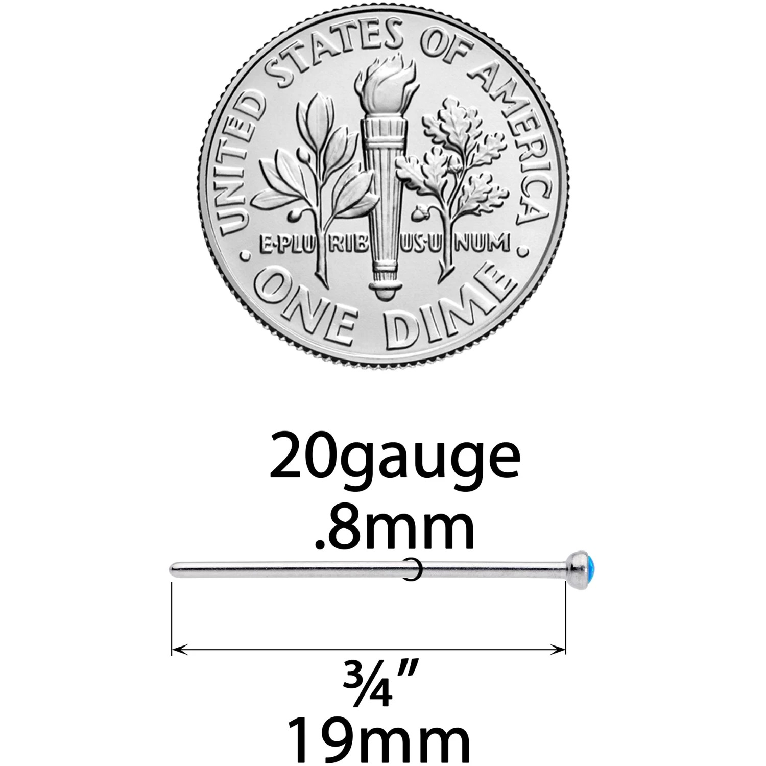 20 Gauge (.8mm), 3/4″ (19mm), Solid Grade 23 Implant Grade Titanium Post, 2mm Synthetic Opal