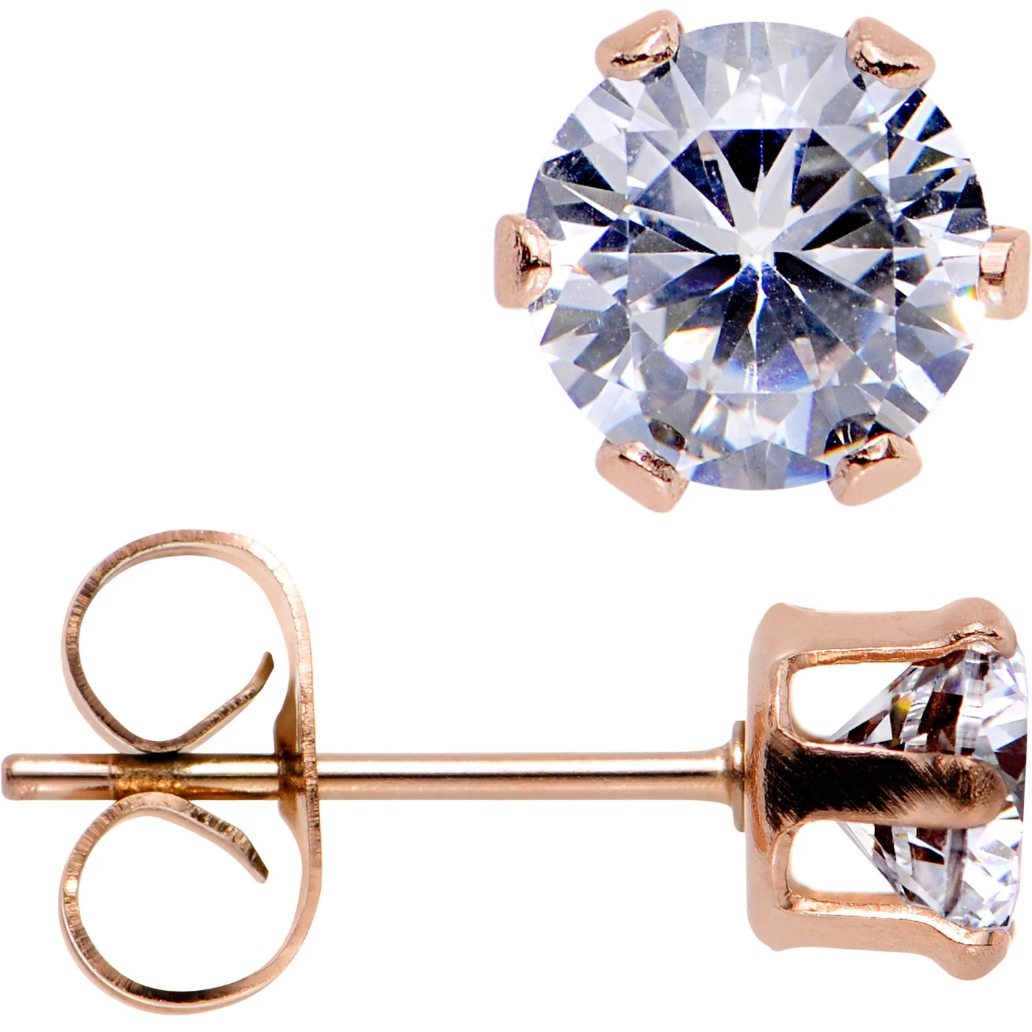 Accentuate your beauty whenever you like with this pair of earrings for your pierced lobes. Made with rose gold IP over 316L surgical grade stainless steel posts with friction backings to secure these mesmerizing beauties, these fashion earrings feature 5mm clear cubic zirconia gem studs, so what are you waiting for? Grab your pair of divine earrings before you miss out!
