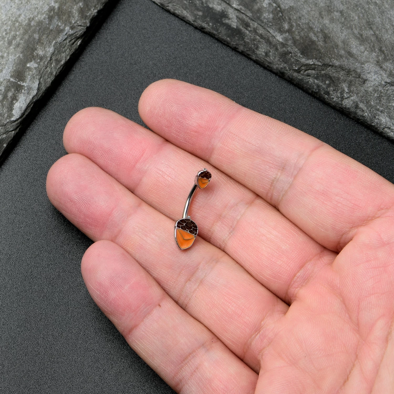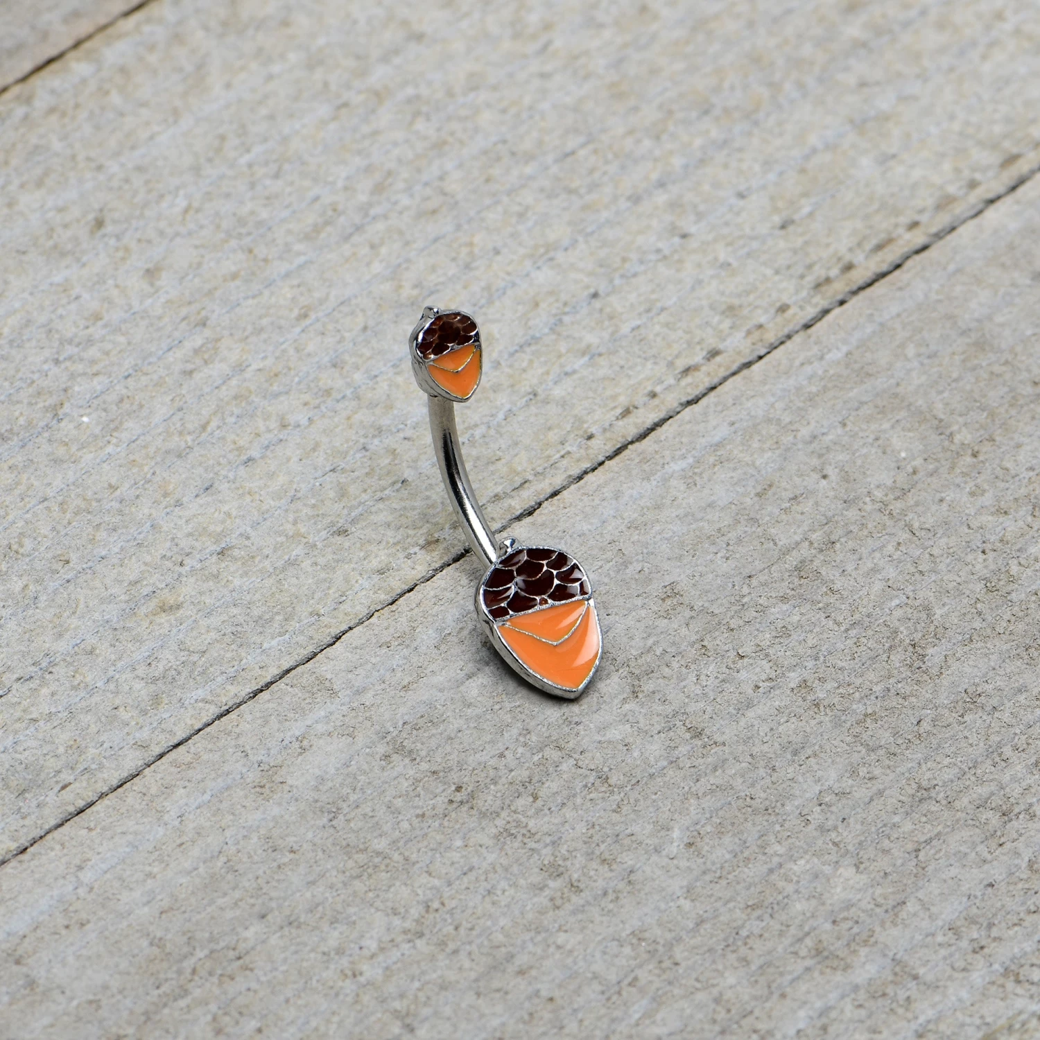 Autumn Acorn Brown Orange Fall Double Mount Belly Ring