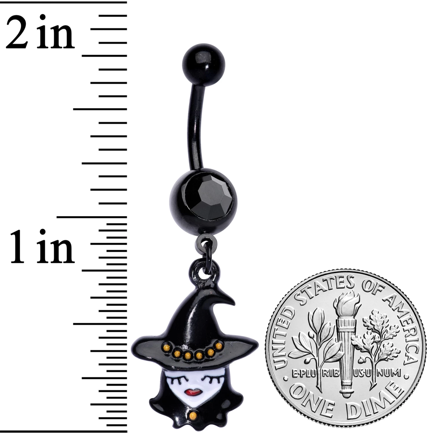 Don’t worry about watching out for scary monsters or creepy-crawlies this Halloween when you wear this 14 gauge belly button ring; you’ll be the scariest and prettiest around! Made with a 3/8″ black PVD over 316L surgical grade stainless steel curved barbell, this navel ring features a black bottom gem as well as a pretty witch dangle charm that will be a spooky surprise for anyone you meet!