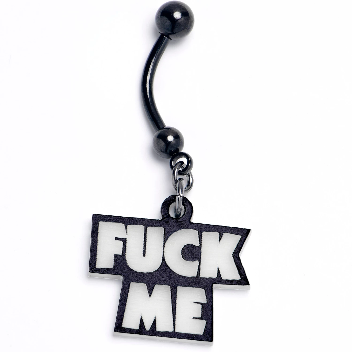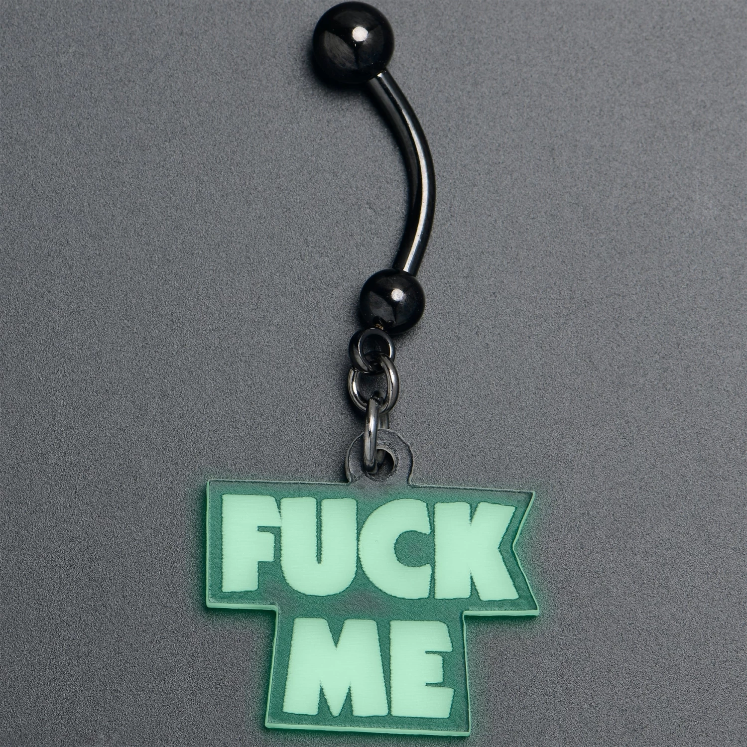 Black Glow in the Dark F*ck Me Dangle Belly Ring
