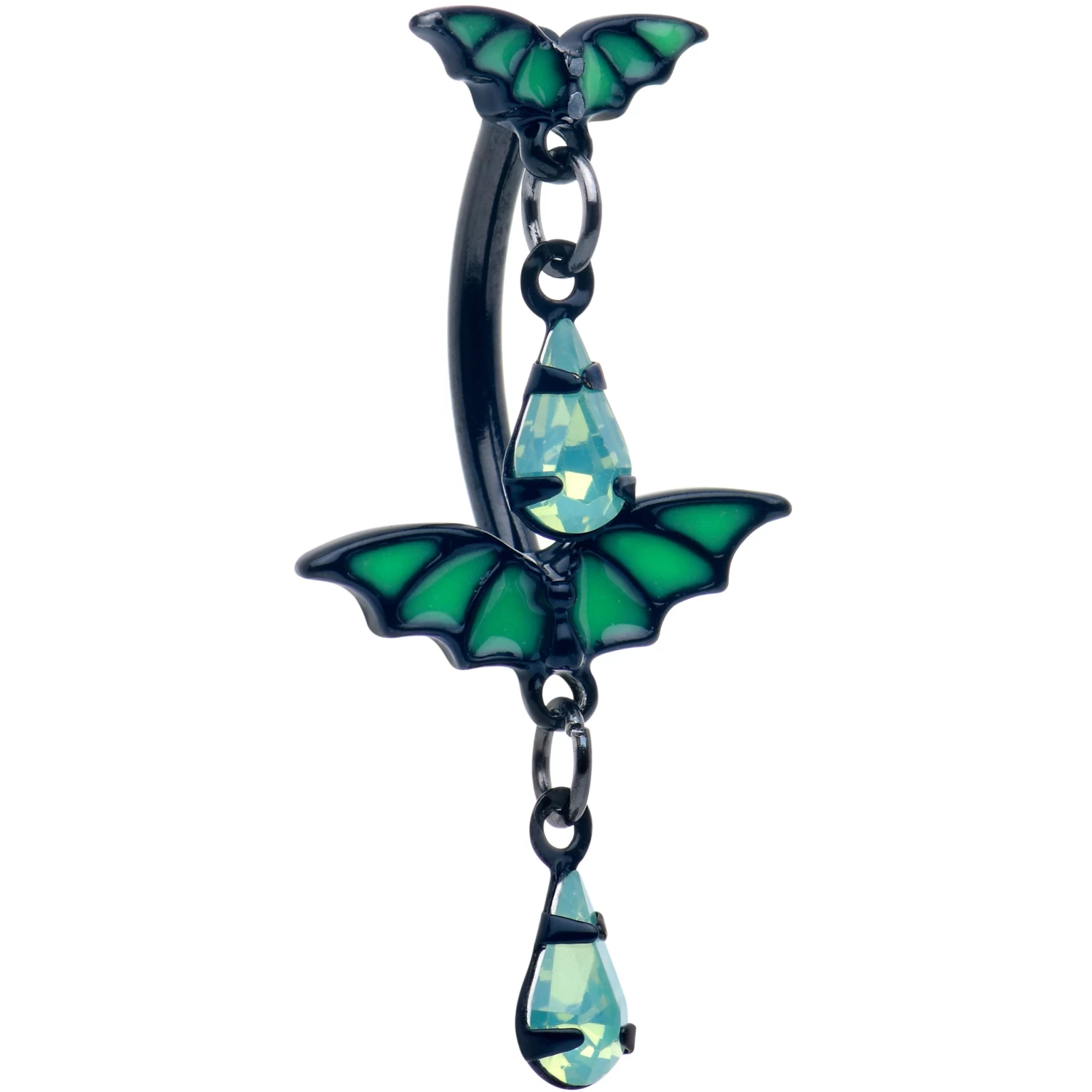 Black Green Bat Wings Dangle Double Mount Belly Ring