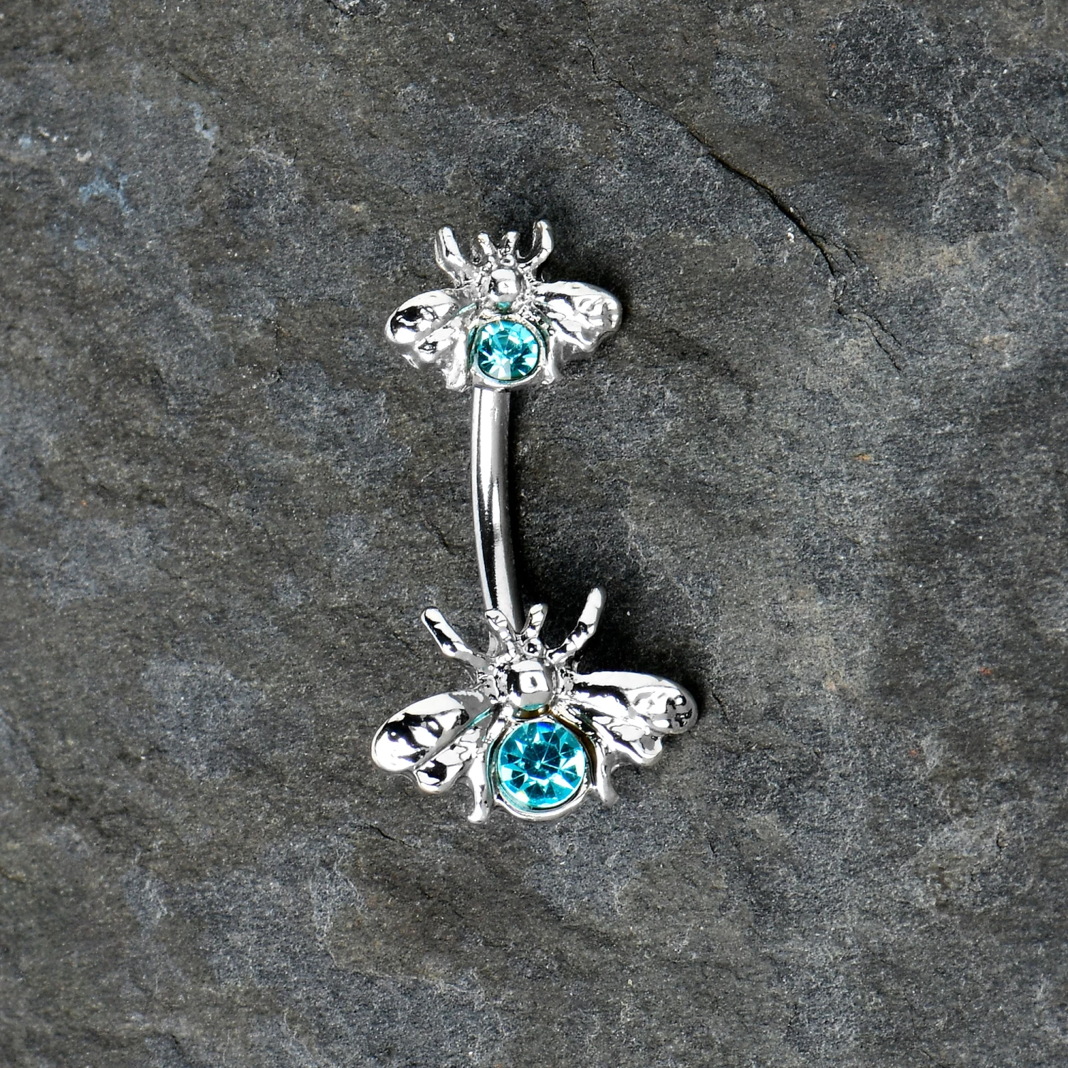 Blue Gem Bees Beautiful Insect Double Mount Belly Ring