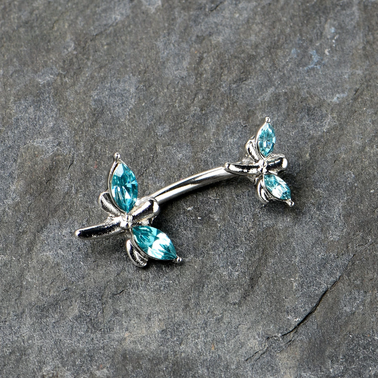 Blue Gem Simple Stylized Dragonfly Double Mount Belly Ring