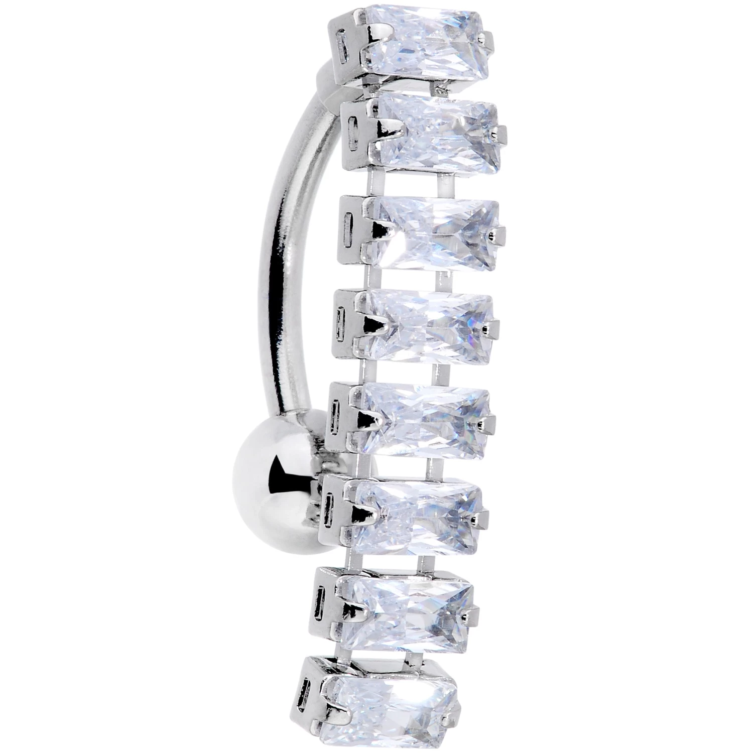 Let all the allure hang out with this 14 gauge navel jewelry! It’s made with a 3/8″ durable 316L surgical grade stainless steel curved barbell with a 5mm bottom ball end. The top end is a flexible, hanging strand of eight clear cubic zirconia gems. The way this belly button ring can flex and sway with your motion is sure to catch the light….and the eyes of everyone around! Add some flexibility to your navel piercing with this fabulous, flexible navel ring!