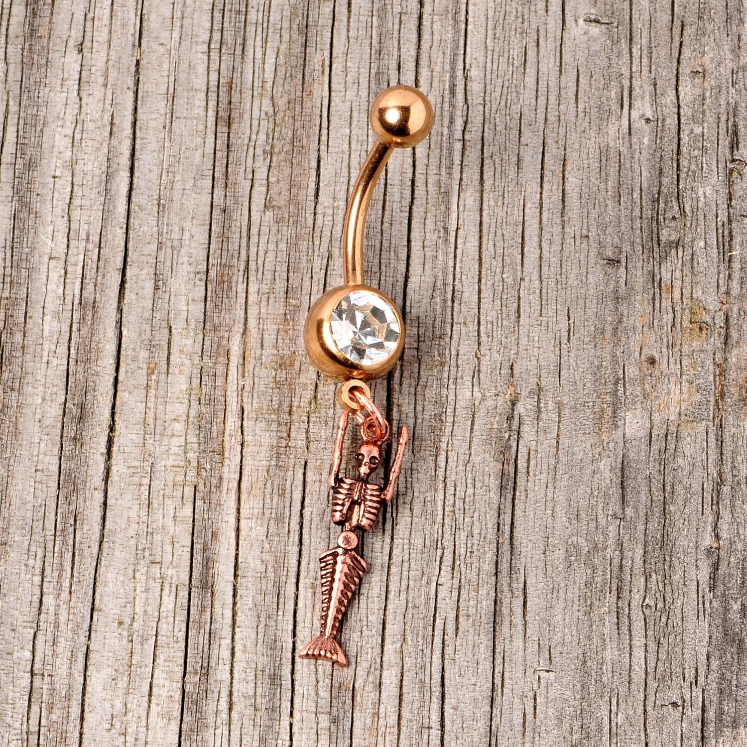 Clear Gem Rose Gold Tone Mermaid Skeleton Halloween Dangle Belly Ring