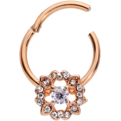 16 Gauge3/8 Clear Gem Rose Gold Tone Wreath Hinged Segment Ring