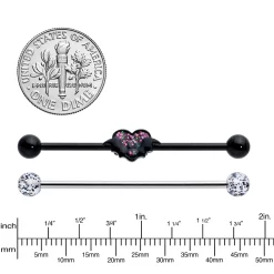 Gaby 14 Gauge Black Bat Heart Halloween Clear Industrial Barbell 38mm Set Of 2