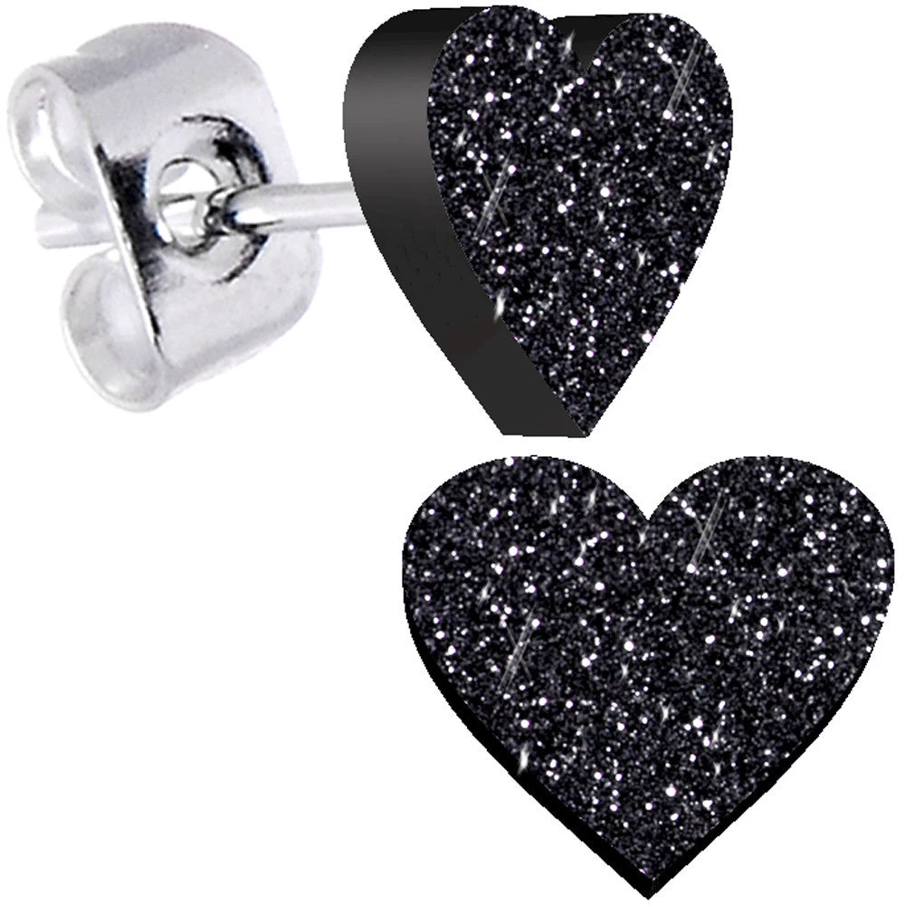 These shimmering black heart stud earrings are the perfect dose of glamour. Glitter studs in a cute heart shape. Black glitter earrings for pierced ears.