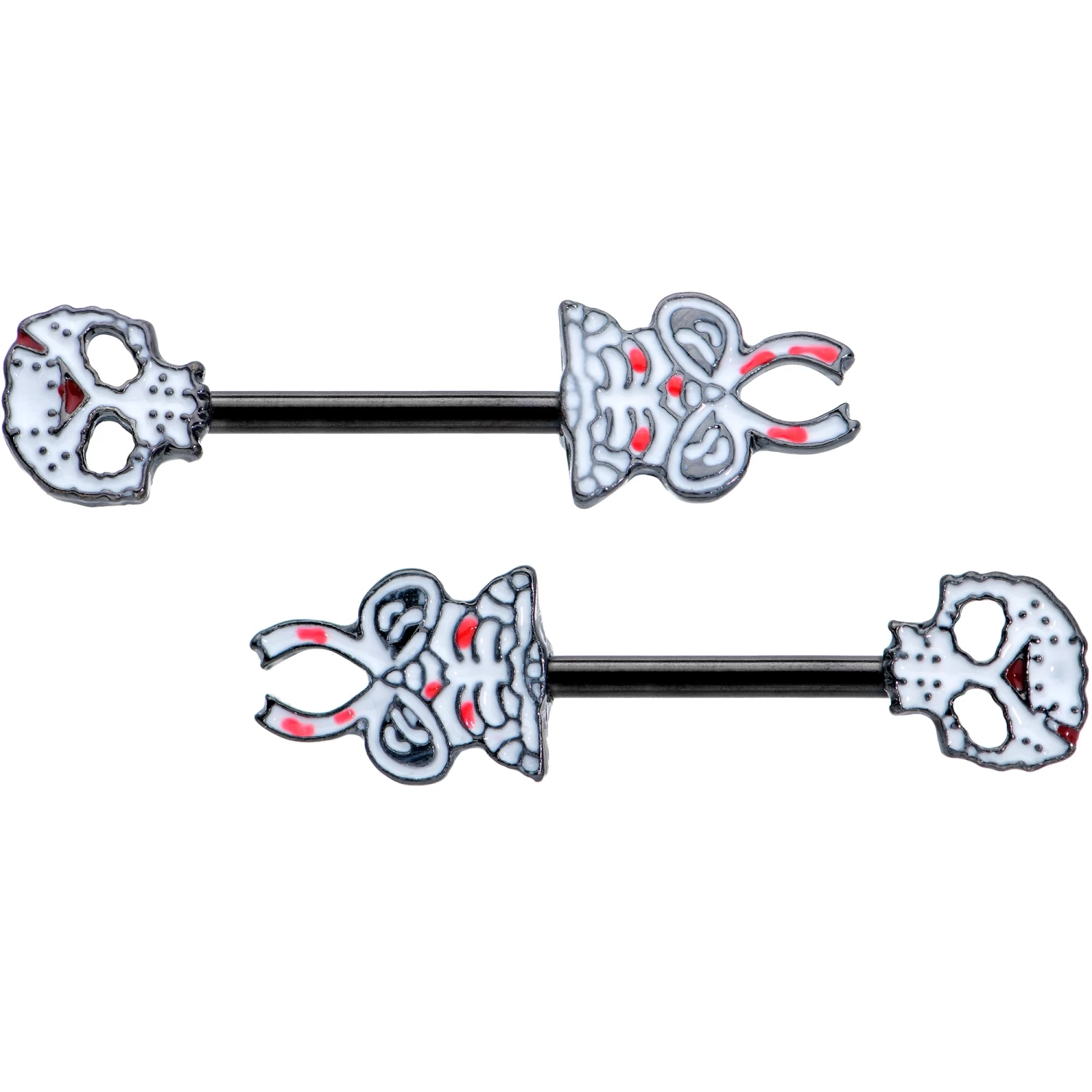 14 Gauge 1/2 Black Skeleton Body Halloween Barbell Nipple Ring Set