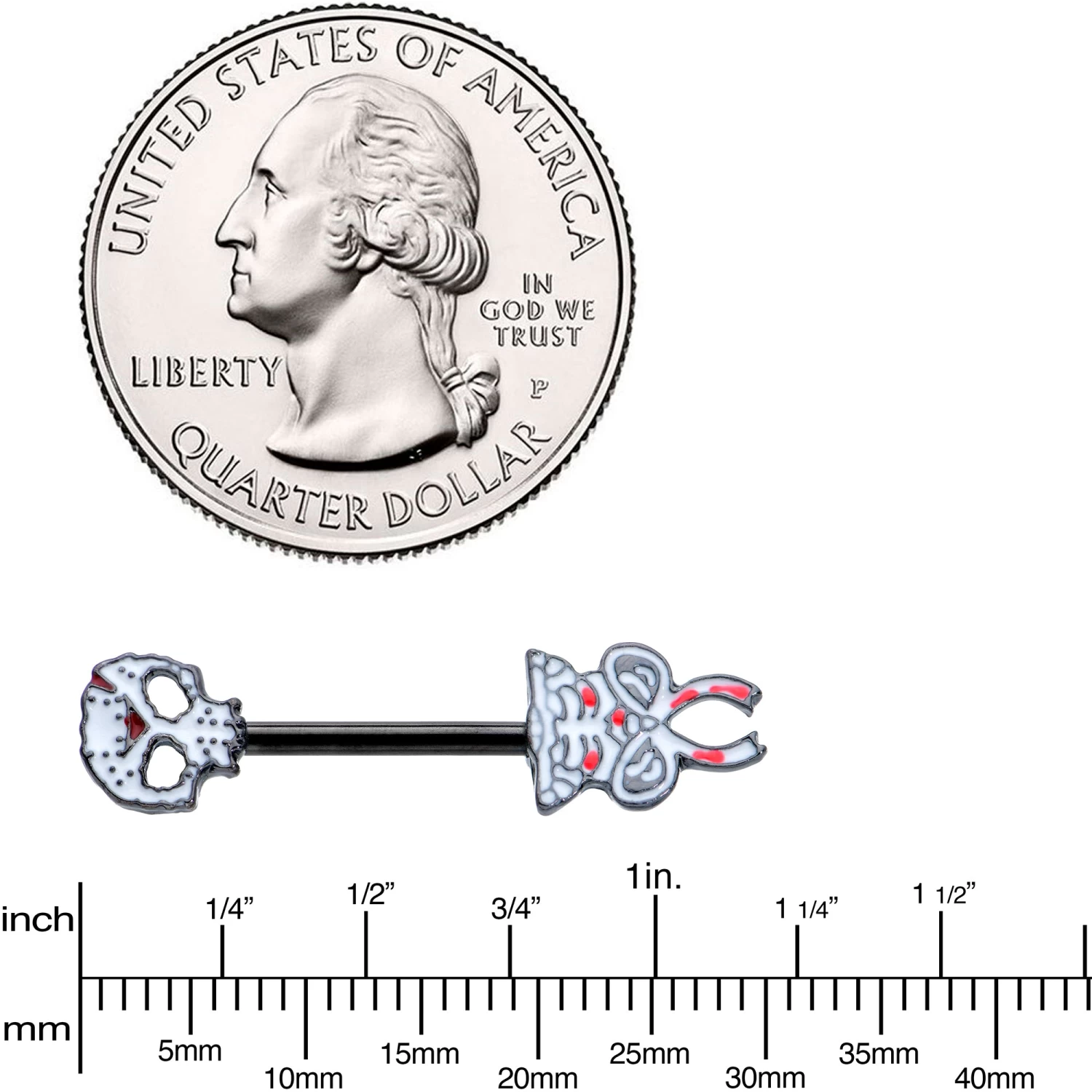 This Halloween, let these skeletons’ bodies beautify your own with this 14 gauge nipple jewelry. It’s made with 12mm black plated over 316L surgical grade stainless steel straight barbells. One end features a skeleton’s head charm, with contrasting detail to really make it pop. The other end features a skeleton’s hips and pelvis charm with matching detailing and pink embellishment. Have the best bodies around this Halloween, with this sleek and elegant skeleton nipple piercing jewelry! Sold as a set of two.