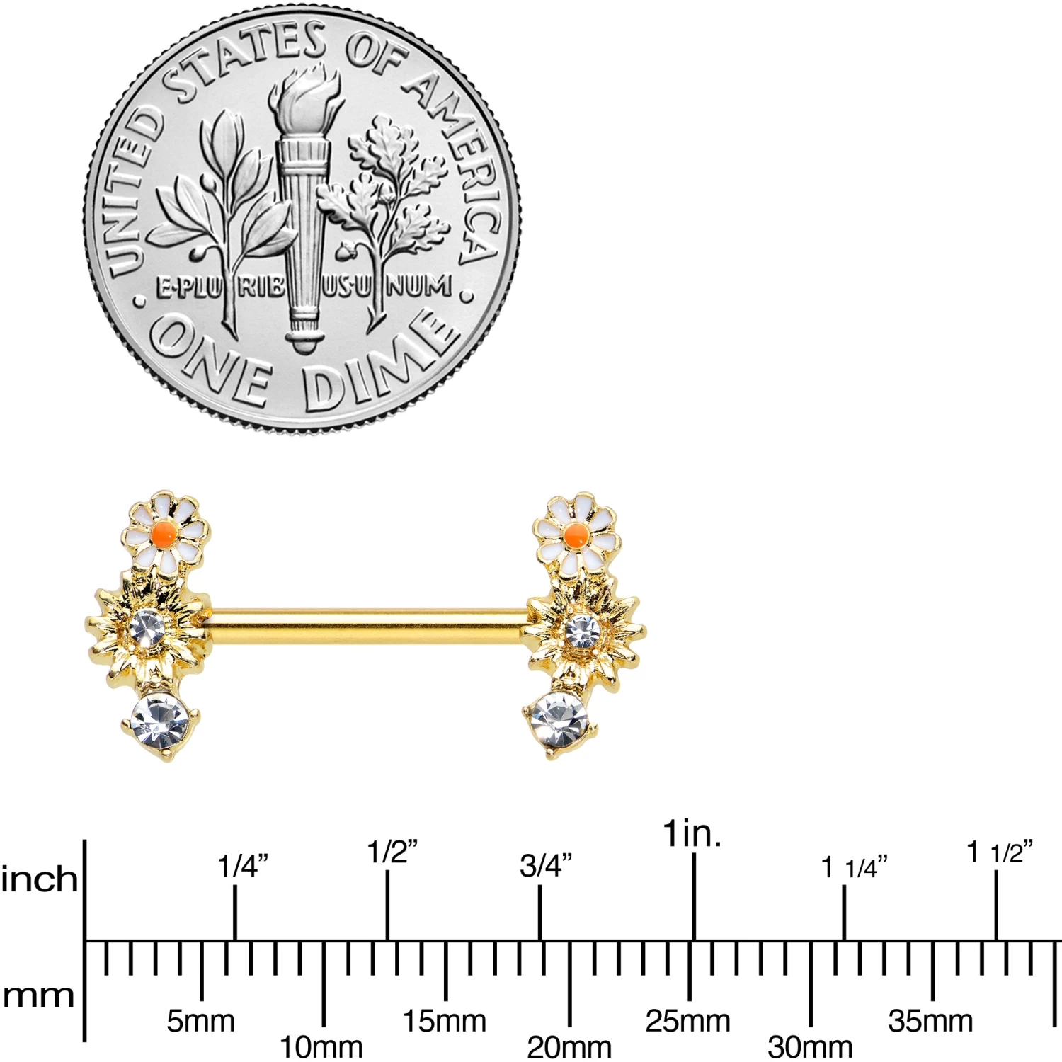 14 Gauge 1/2 Clear Gem Gold Tone Sunny Day Daisy Nipple Ring Set