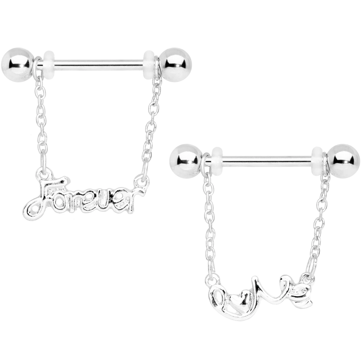 14 Gauge 1/2 Love Forever Chain Dangle Nipple Ring Set